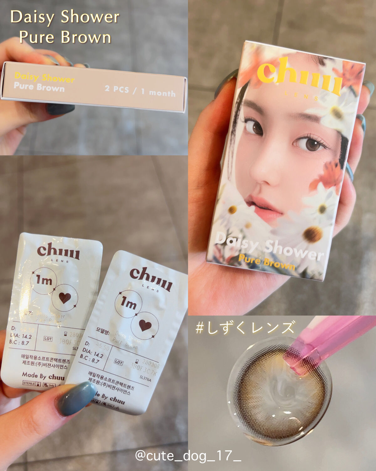 着色13.8mmでやや大きめだけど、極細のふちなのでナチュラルに見える。 レンズのデザインは単体で見ると色んな要素が組み込まれていてかなり複雑。でもつけてみると驚くほど馴染んで、程よく光を取り込んだちゅるんとした瞳になる。 黄みが強すぎないベージュなのでどんなシーンでも使える無難なレンズだなと思った。 ナチュラルだけどしっかり黒目を大きくしたい時にピッタリのレンズ👀