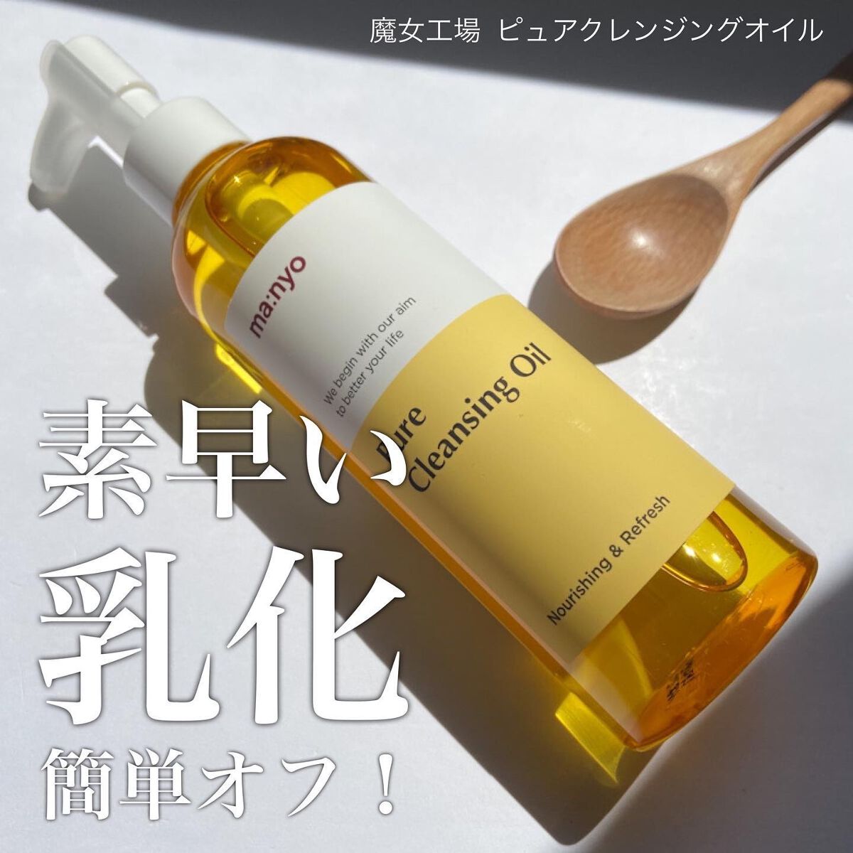 自分でリピ買いするほど好きなクレンジングオイル!魔女工場 ピュアクレンジングオイル 14種類の植物性のオイルで肌に優しく毛穴ケアも出来るクレンジング 自分はサラサラなオイルよりもしっかりと厚みのあるオイルが好きなので魔女工場はまさに最適。重いという表現が正しいか分かりませんがとにかく重い笑 メイクの落ち具合もしっかりと落ちるので満足してますが、さすがにアイライナーやマスカラなどのウォータープルーフのアイテムはこれだけでは落ちないので目周りは別でポイントリムーバーなどを使うのが良いかと!