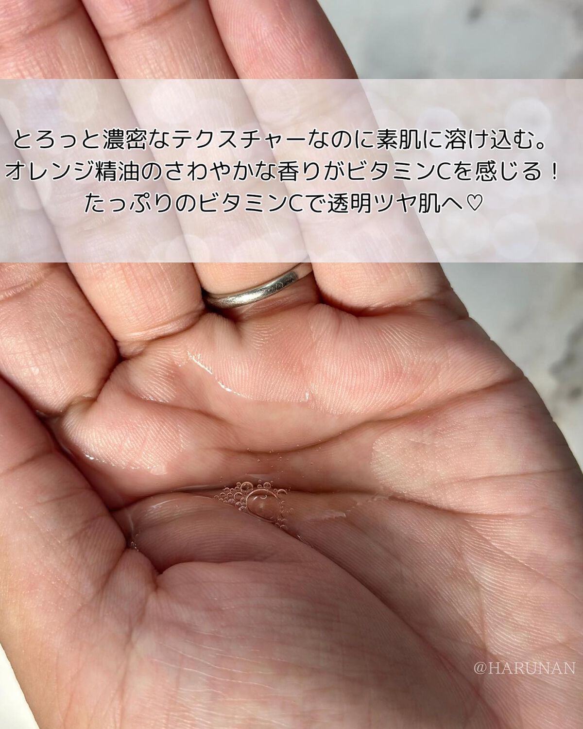 100兆個のマイクロ高浸透ビタミンCが肌のうるおい、弾力、つや、キメにアプローチ✨ とろっとしていて、かなり重ための使用感。 なのにいつの間にか馴染んでサラッとした手触りに😳💕 これなら朝からも使えちゃう!
