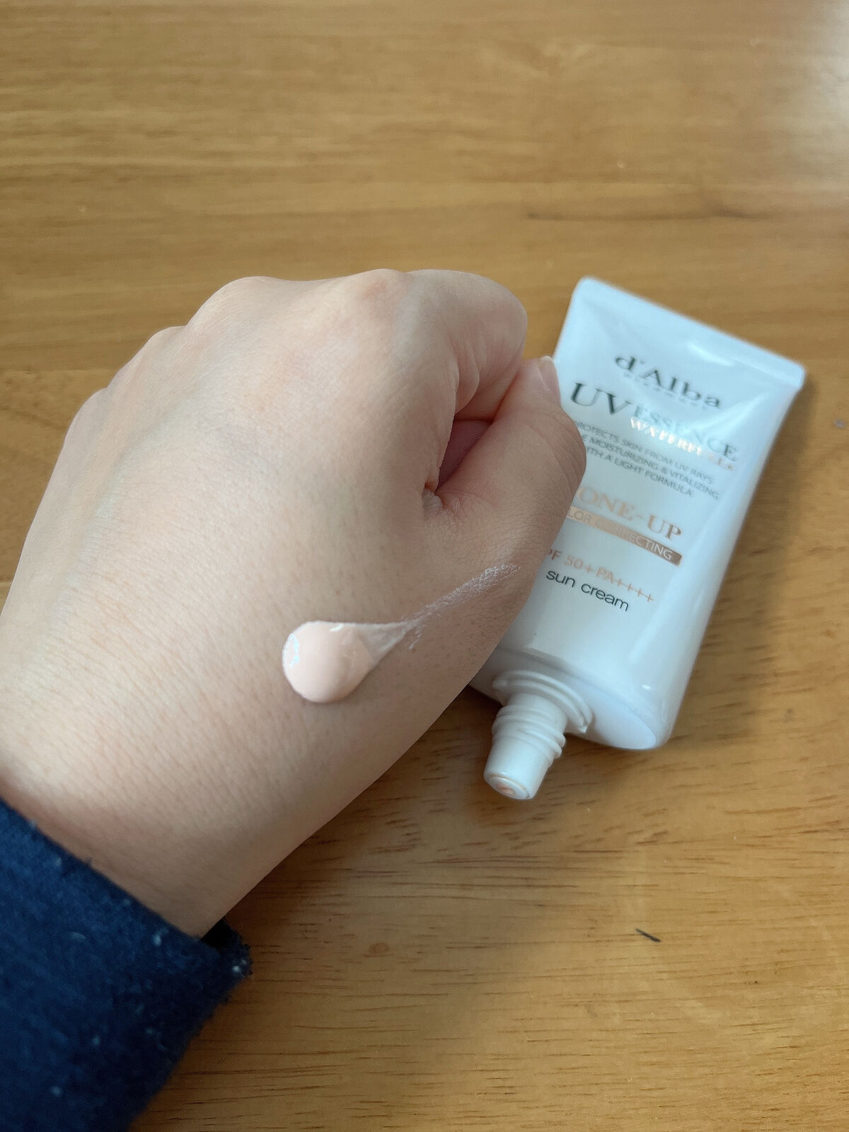 塗り心地はすごく好き。🧚♀️よく伸びるし、若干トーンアップしてくれます。 乾燥もそんなにしないです。そんなにしないけど、ちょっとします。 ノーファンデで使うにはちょっと色薄いかな〜と思うので、わたしはUV効果のないリキッドファンデを重ねて使ってます。 仕事でお昼くらいに鏡見ても全然崩れてないです!崩れてたとしても綺麗に崩れてます🥺⭐︎