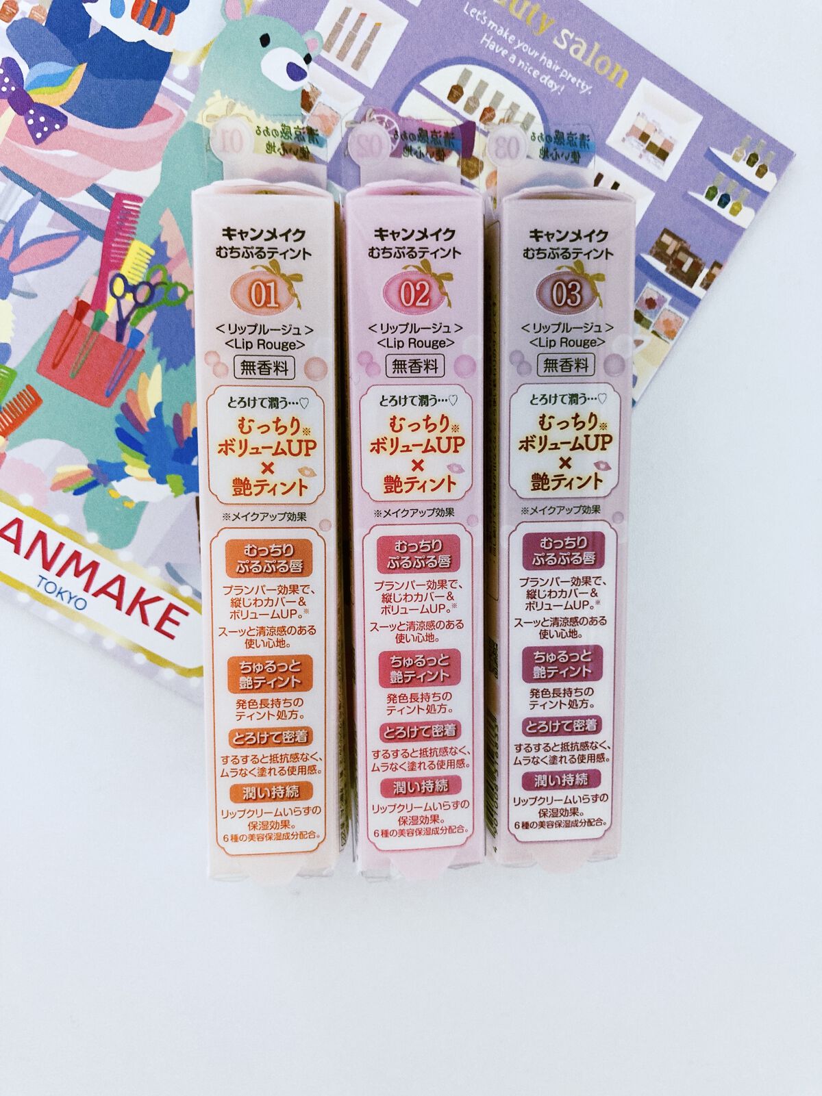 \キャンメイクむちぷる全色パソカ図鑑/📝キャンメイクむちぷるティント¥77001バタースコッチ02モモ03ワインベリー05フィグピューレ06ラズベリーケーキ07フルーツオレ40thxストロベリーボンボン#キャンメイク#プチプラコスメ#ティント...
