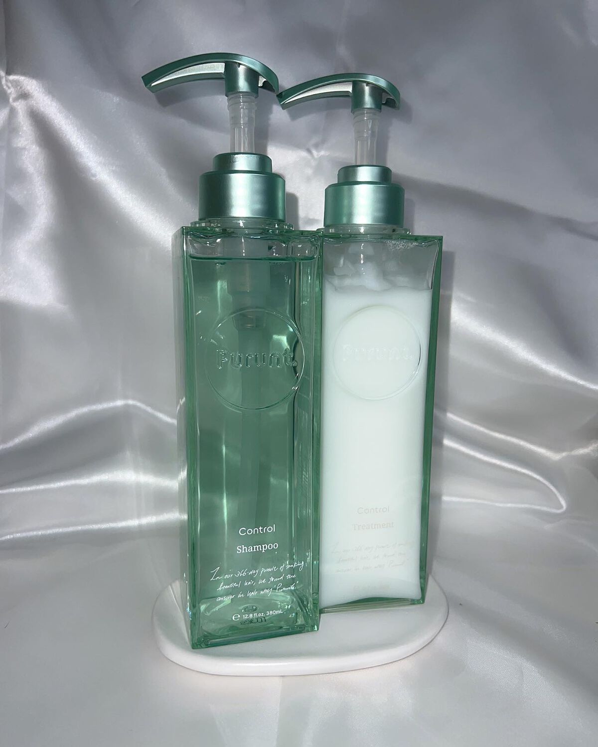 Purunt.コントロール美容液シャンプー/トリートメントスキンケア発想のヘアケアでコントロールはうねり、クセに特化したシリーズ💚シャンプーは泡立ち良く頭皮の汚れを吸着除去🙆♀️トリートメントはなめらかでなじませやすく手触りがつるん😍まとま...