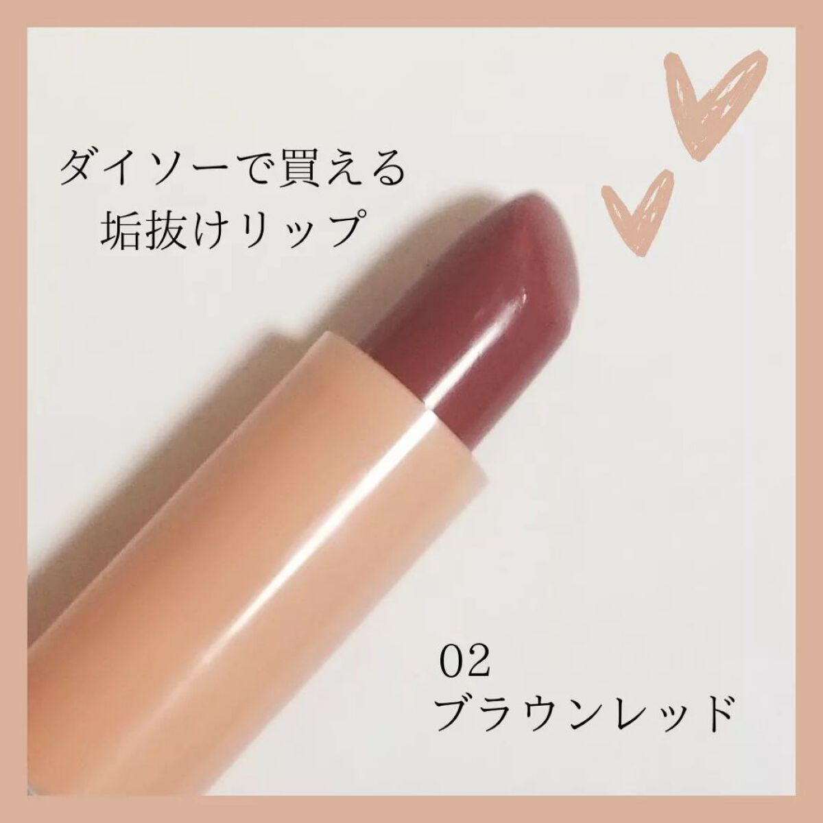 意外と良かった!!!coouリップスティックティント02ブラウンレッドダイソーの110円商品です♪【良いところ】・スルスル塗れて使いやすい!!・秋冬に付けたくなるようなお洒落なブラウンレッド・マット過ぎず、うるうる過ぎず、ちょうどよい艶感が出...