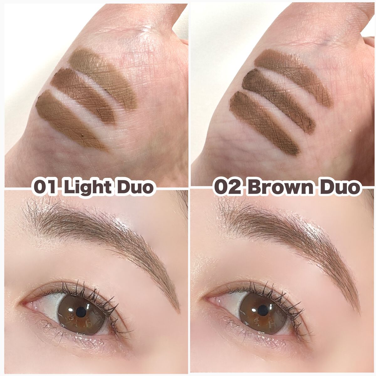 - 自分だけの眉メイクをもっと簡単にふわふわアイブロウジェル ■スフレのようなふわふわジェルワックス 重さを感じない軽いテクスチャで繊細タッチも簡単に描ける。 ■こすっても落ちにくい、汗・水に強い すぐに乾いてしっかり密着。塗れてこすれても落ちにくいロングステイ処方。 ■混ぜてもOK!濃淡を作りやすい2色デュオ ■付属ブラシでアイライナーや涙袋にも使える