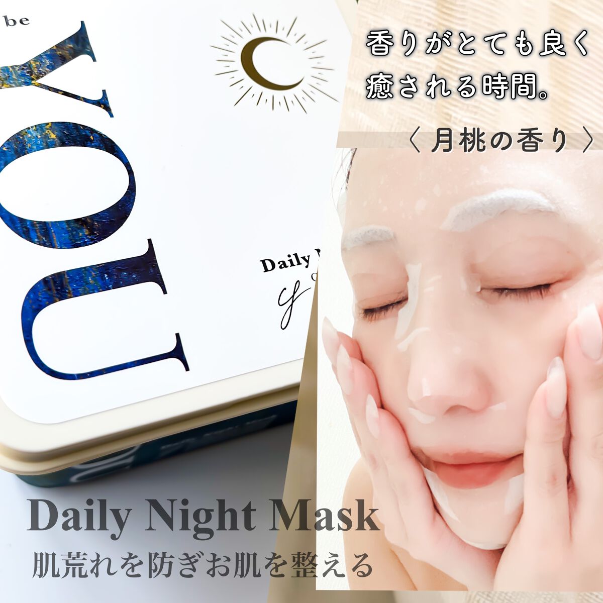 ✨YoubeYOUデイリーナイトマスク朝用のを使い終わったので、夜用のも使ってみました。シートマスク自体は朝用とあまり変わらないと思いました。ピッタリと貼りやすいし、目元の部分も大きく穴が空いていないのでとても良いです☺️何より良い香りなのも...