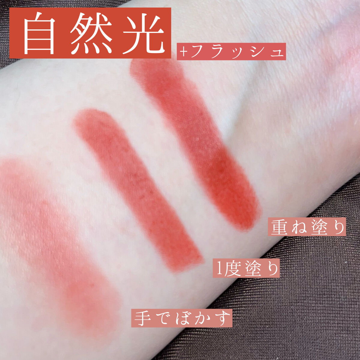 この深い赤みブラウンが本当にツボ❣️可愛すぎる🥰💖 今日はガツンとベタ塗りで重ね塗りしてみたけど、唇がもちもちっとして質感も大好き🫶🏼💖 発色自体はサッと1度塗りで充分発色するんですけどね、もちもちっとした感じは重ね塗りするとどんどん増していく感じ🥰 この絶妙な赤みブラウンがなぜだか本当に馴染みが良いんです🥰🥰