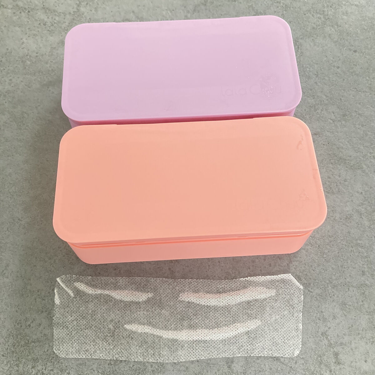 伸びがいいので伸ばして口元、顎の引き締めに! 折りたたんで頬を重点的に! 気になる首元にもフィット🌟 しかも5分間でいいので手軽に気になる部位をケアできます😆 ピンクの方は箱の締まりが悪く届いた時には外箱がびちょびちょに🥲 中の液が全部なくなっていたのが残念でした。。