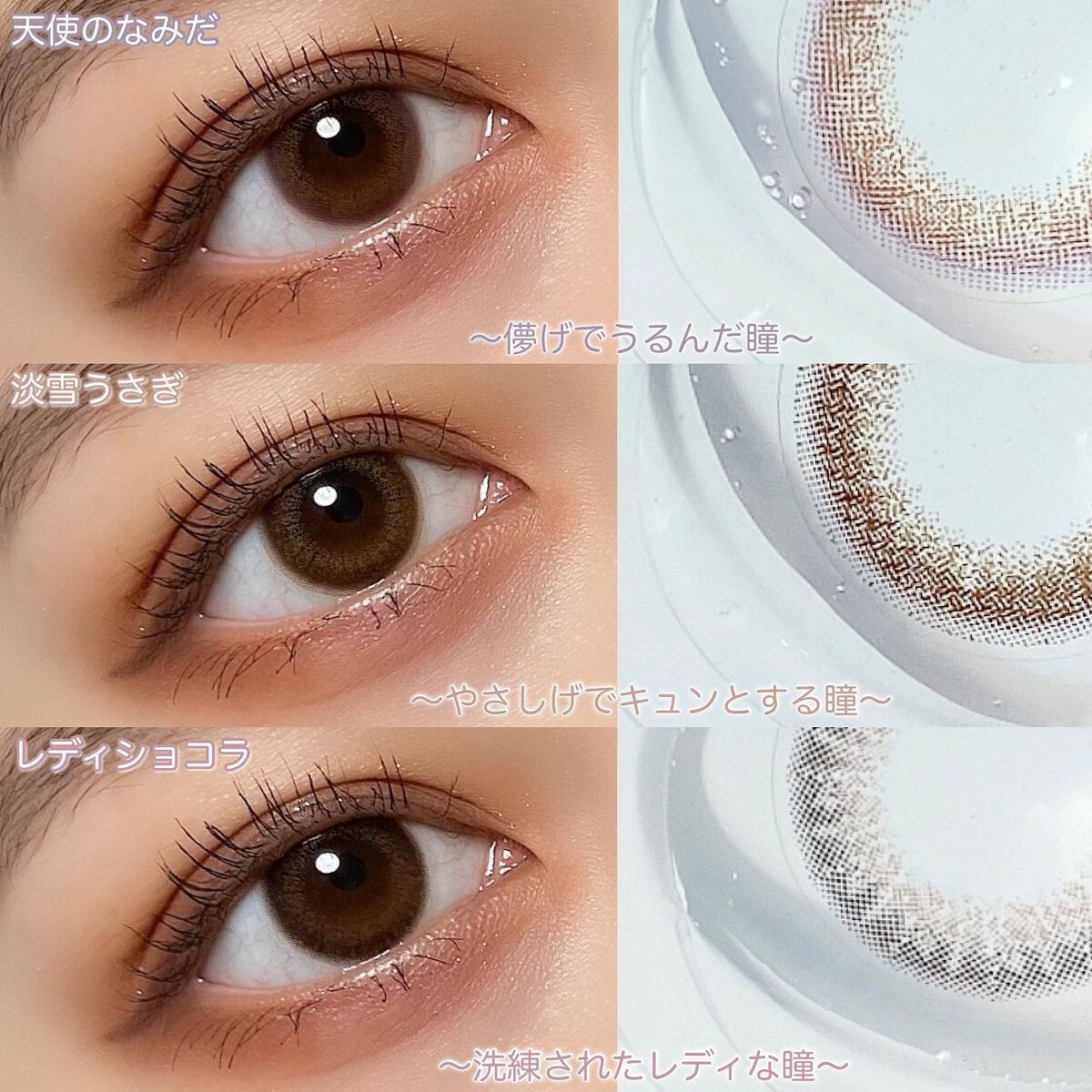 - ※2025年7月〜商品パッケージを順次リニューアル。尚これに係る商品の返品・交換等は承っておりません。 ちゅるんとかわいいふんわりレンズ ふんわりと瞳になじみながら、「ちゅるん」とツヤっぽく存在感あるフチ感を実現 <カラー説明> ■天使のなみだ ≪儚げでうるんだ瞳≫ ブラウン×甘いピンクラベンダーで、透明感のあるうるっとした仕上がりに。 ■淡雪うさぎ ≪やさしげでキュンとする瞳≫ 淡いミルクベージュがふわっと溶けこむように馴染み、瞳をやさしい印象に。 ■星屑キャンディー ≪儚さあふれる うるしゅわ瞳≫ 透明感のある絶妙ニュアンスグレー。 儚さあふれる、うるしゅわ瞳に♡ ■満月パンケーキ ≪儚げちゅるん ぷにぷる瞳≫ 極細フチ×淡いベージュで 儚げちゅるん。 ぷにっと可愛くまあるい瞳を演出♡ ■夢見(ゆめみ)パール 映えちゅるん♥ツヤっぽ瞳 イエベでもブルべでも 使いやすい、柔らかなグレージュカラー。 ほんのり色っぽい、ツヤ感たっぷりの瞳に。 ■海月(くらげ)リング 光がゆらめく♥うるちゅる瞳 透明感たっぷり儚げ白っぽグレー。 自然に光が入ったような 、うるうるちゅるんな瞳に。 DIA:14.2mm BC:8.7mm 中心厚:0.08mm( -3.00D ) 含水率:42.5% 使用上の留意事項 ●眼科医院等を受診してからお求めください ●眼に異常を感じたら直ちにレンズ使用を中止し、お近くの眼科等で診察を受けてください ●医師の指示にしたがってご使用ください ●コンタクトレンズを装用する場合、自覚症状がなくても、眼科医院等での定期検査を受けてください ●レンズに不具合がある場合は使用しないでください