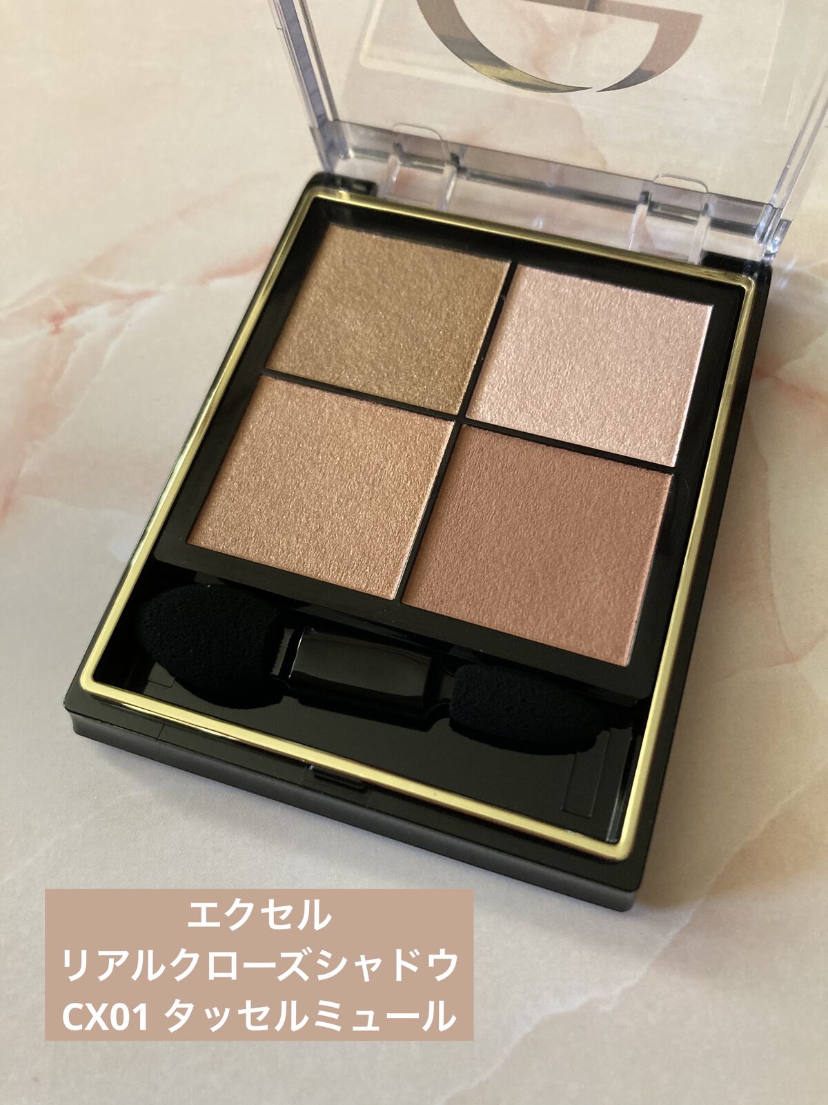 - 1.重ねてもくすまないクリアな発色。ナチュラルに溶け合う絶妙4カラー。 ツヤタイプ(左上・左下カラー):アイホール全体にぼかしたり、目尻へのポイント使いも。 ラメタイプ(右上カラー):アイホール中心や下まぶたにきらめきのアクセント。 マットタイプ(右下カラー):単色で陰影を付けたり、ツヤタイプと重ねてニュアンスをプラス。 2.うっとりするほどリッチな質感で粉飛びしないのに、軽いタッチで伸びて重ねやすいテクスチャー。 3.スクワラン(保湿)配合で目元の乾燥を防ぎます。 [PERFORMANCE] 色と質感の重ね着を楽しむ、ファッション感覚アイシャドウパレット [DESIGN] ・まぶたにひっかからない、なめらかな上質チップ ・薄型コンパクトだからポーチの中でかさばらない [QUALITY] 1.重ねてもくすまないクリアな発色 ナチュラルに溶け合う絶妙4カラー 2.パールの重ね技でまぶたに極上のツヤ感 微細多色 カラーパール 銀コーティング ガラスパール* excel GOLD-MIX処方(金パール配合)* (*右上のシャイニーカラーのみ) 3.うっとりするほどリッチな質感で粉飛び知らず!なのに、軽いタッチで伸びて重ねやすい 4.スクワラン(保湿)配合で目元の乾燥を防ぐ