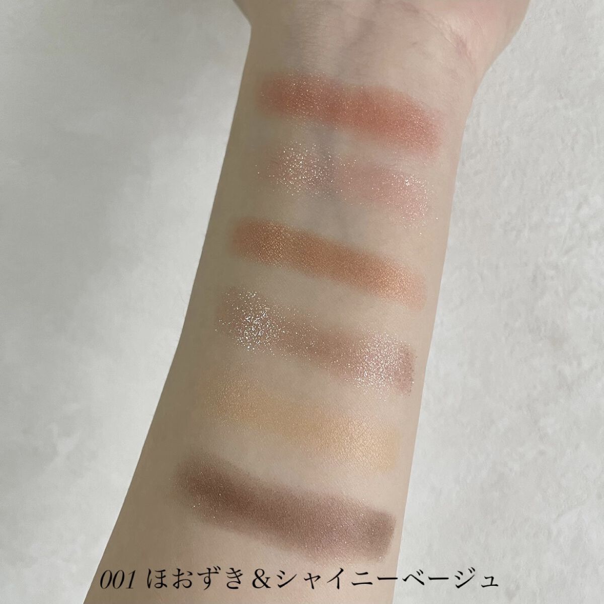 - 素肌と調和するカラーレンジで構成されたアイカラーパレット。 どんなシーンでも使いやすいブラウンシリーズでありながら、 赤みブラウンやオレンジブラウンなどカラーバリエイションを揃えたひとくせ陰影ブラウンパレットです。 ※シリーズ・カラー毎にそれぞれパッケージは異なります。詳しくはWEB版のパターン商品ページにてご確認いただけます。 Chapter1.スキンハーモナイジングカラーでどんな肌にも色がなじむ Chapter2.しっとり密着し、粉質はキラキラ・なめらか Chapter3.単色でも、複数色組み合わせても使える