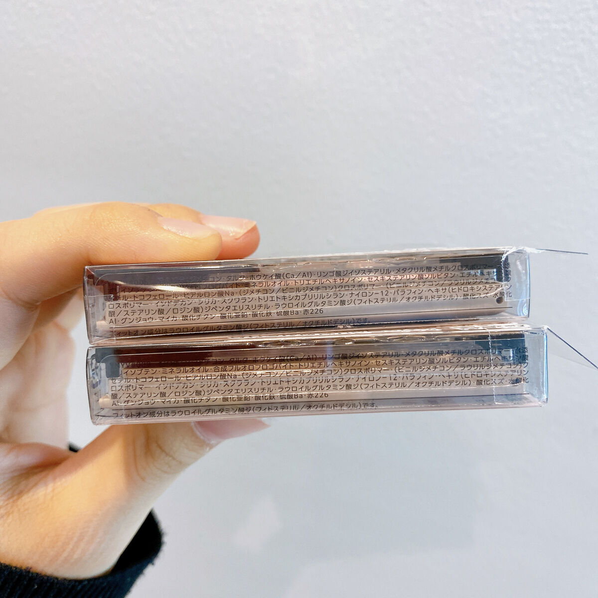 - <BR-1 ベージュブラウン> タルク・ジメチコン・リンゴ酸ジイソステアリル・合成金雲母・ホウケイ酸 (Ca/Al) ・メタクリル酸メチルクロスポリマー・水添ポリイソブテン・ミネラルオイル・トリエチルヘキサノイン・エチルヘキサン酸セチル・セスキステアリン酸ソルビタン・ヘキサ (ヒドロキシステアリン酸/ステアリン酸/ロジン酸) ジペンタエリスリチル・トコフェロール・ヒアルロン酸Na・ (ジメチコン/ビニルジメチコン) クロスポリマー・ (ビニルジメチコン/ラウリルジメチコン) クロスポリマー・イソドデカン・シリカ・スクワラン・トリエトキシカプリリルシラン・ナイロン-12・パラフィン・ラウリン酸亜鉛・ラウロイルグルタミン酸ジ (フィトステリル/オクチルドデシル) ・酸化スズ・水酸化Al・クロルフェネシン・グンジョウ・マイカ・酸化チタン・酸化亜鉛・酸化鉄・硫酸Ba <BR-2 グレージュブラウン> ジメチコン・タルク・ホウケイ酸 (Ca/Al) ・リンゴ酸ジイソステアリル・合成金雲母・メタクリル酸メチルクロスポリマー・水添ポリイソブテン・ミネラルオイル・トリエチルヘキサノイン・セスキステアリン酸ソルビタン・トコフェロール・ヒアルロン酸Na・ (ジメチコン/ビニルジメチコン) クロスポリマー・ (ビニルジメチコン/ラウリルジメチコン) クロスポリマー・イソドデカン・エチルヘキサン酸セチル・シリカ・スクワラン・トリエトキシカプリリルシラン・ナイロン-12・パラフィン・ヘキサ (ヒドロキシステアリン酸/ステアリン酸/ロジン酸) ジペンタエリスリチル・ラウロイルグルタミン酸ジ (フィトステリル/オクチルドデシル) ・酸化スズ・水酸化Al・クロルフェネシン・グンジョウ・マイカ・酸化チタン・酸化亜鉛・酸化鉄・硫酸Ba <BR-3 ピンクブラウン> ジメチコン・タルク・リンゴ酸ジイソステアリル・ホウケイ酸 (Ca/Al) ・メタクリル酸メチルクロスポリマー・水添ポリイソブテン・ミネラルオイル・合成金雲母・トリエチルヘキサノイン・エチルヘキサン酸セチル・セスキステアリン酸ソルビタン・ヘキサ (ヒドロキシステアリン酸/ステアリン酸/ロジン酸) ジペンタエリスリチル・トコフェロール・ヒアルロン酸Na・PET・ (ジメチコン/ビニルジメチコン) クロスポリマー・ (ビニルジメチコン/ラウリルジメチコン) クロスポリマー・イソドデカン・シリカ・スクワラン・トリエトキシカプリリルシラン・ナイロン-12・パラフィン・ラウロイルグルタミン酸ジ (フィトステリル/オクチルドデシル) ・酸化スズ・クロルフェネシン・カルミン・グンジョウ・コンジョウ・マイカ・酸化チタン・酸化亜鉛・酸化鉄・硫酸Ba・黄4・赤202・赤226 <BR-4 オレンジブラウン> タルク・ジメチコン・リンゴ酸ジイソステアリル・ホウケイ酸 (Ca/Al) ・メタクリル酸メチルクロスポリマー・合成金雲母・水添ポリイソブテン・ミネラルオイル・トリエチルヘキサノイン・エチルヘキサン酸セチル・セスキステアリン酸ソルビタン・ヘキサ (ヒドロキシステアリン酸/ステアリン酸/ロジン酸) ジペンタエリスリチル・トコフェロール・ヒアルロン酸Na・PET・ (ジメチコン/ビニルジメチコン) クロスポリマー・ (ビニルジメチコン/ラウリルジメチコン) クロスポリマー・イソドデカン・シリカ・スクワラン・トリエトキシカプリリルシラン・ナイロン-12・パラフィン・ラウロイルグルタミン酸ジ (フィトステリル/オクチルドデシル) ・酸化スズ・水酸化Al・クロルフェネシン・グンジョウ・マイカ・酸化チタン・酸化亜鉛・酸化鉄・硫酸Ba・赤202 <BR-5 カシスブラウン> ジメチコン・タルク・リンゴ酸ジイソステアリル・合成金雲母・メタクリル酸メチルクロスポリマー・ホウケイ酸 (Ca/Al) ・水添ポリイソブテン・ミネラルオイル・トリエチルヘキサノイン・エチルヘキサン酸セチル・セスキステアリン酸ソルビタン・ヘキサ (ヒドロキシステアリン酸/ステアリン酸/ロジン酸) ジペンタエリスリチル・トコフェロール・ヒアルロン酸Na・ (ジメチコン/ビニルジメチコン) クロスポリマー・ (ビニルジメチコン/ラウリルジメチコン) クロスポリマー・イソドデカン・シリカ・スクワラン・トリエトキシカプリリルシラン・ナイロン-12・パラフィン・ラウロイルグルタミン酸ジ (フィトステリル/オクチルドデシル) ・酸化スズ・クロルフェネシン・グンジョウ・マイカ・酸化チタン・酸化亜鉛・酸化鉄・硫酸Ba <BE-8 ピンクベージュ(限定)> ジメチコン・タルク・ホウケイ酸(Ca/Al)・リンゴ酸ジイソステアリル・メタクリル酸メチルクロスポリマー・水添ポリイソブテン・合成フルオロフロゴパイト・ミネラルオイル・トリエチルヘキサノイン・セスキステアリン酸ソルビタン・エチルヘキサン酸セチル・トコフェロール・ヒアルロン酸Na・(ジメチコン/ビニルジメチコン)クロスポリマー・(ビニルジメチコン/ラウリルジメチコン)クロスポリマー・イソドデカン・シリカ・スクワラン・トリエトキシカプリリルシラン・ナイロン-12・パラフィン・ヘキサ(ヒドロキシステア