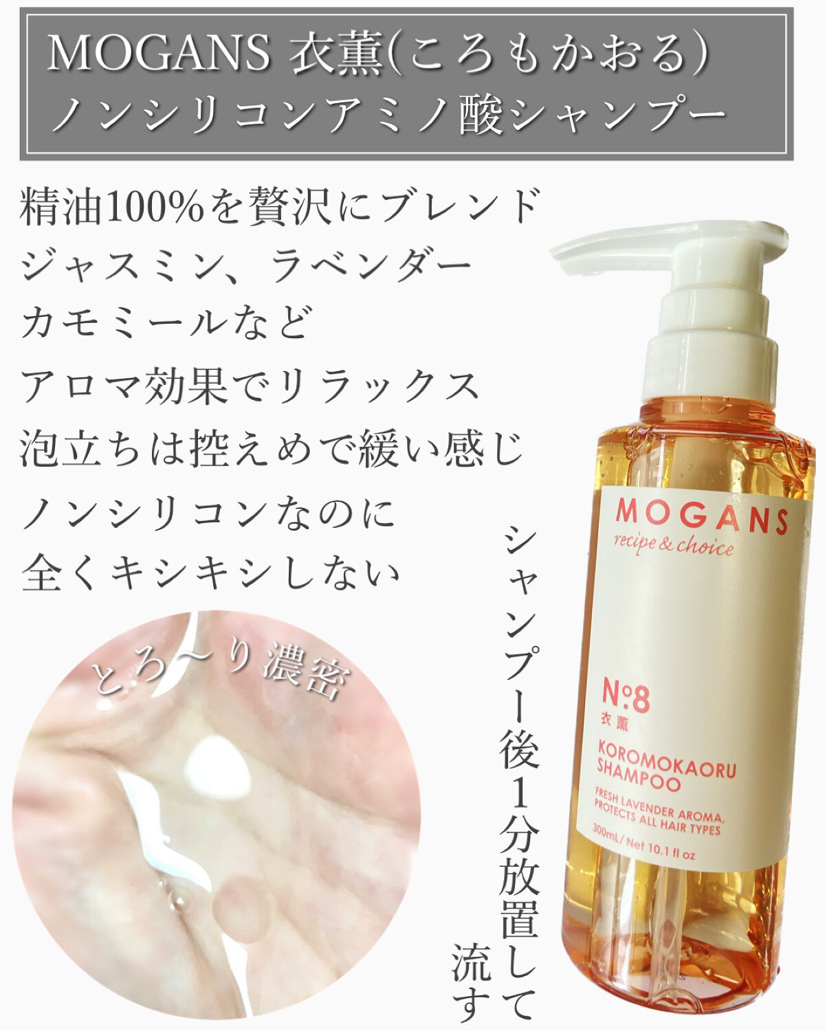 商品詳細情報MOGANS ノンシリコン アミノ酸 シャンプー/コンディショナー 衣薫(ころもかおる)