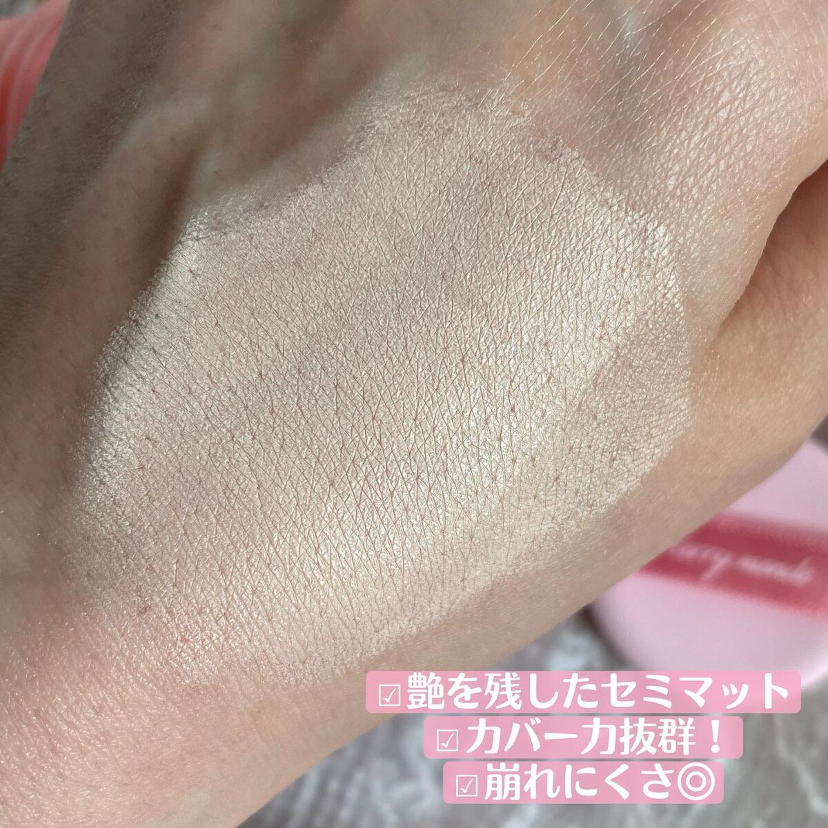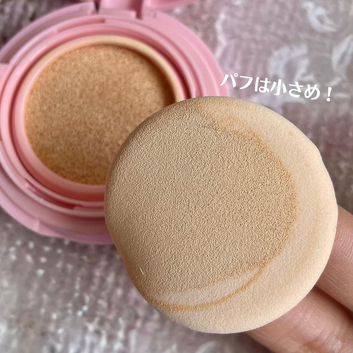 ビーガンのクッションファンデなの🙈 前から可愛いなぁって思ってて、評判も良いから購入🌸 カバー力はかなり高め!! しっかりメイクしたい日にオススメ🥹 ノンケミカル、パフには抗菌効果がついてて機能的! ベタつかないけど乾かないし軽いのにハイカバー、中々良いよ😭🩷🩷