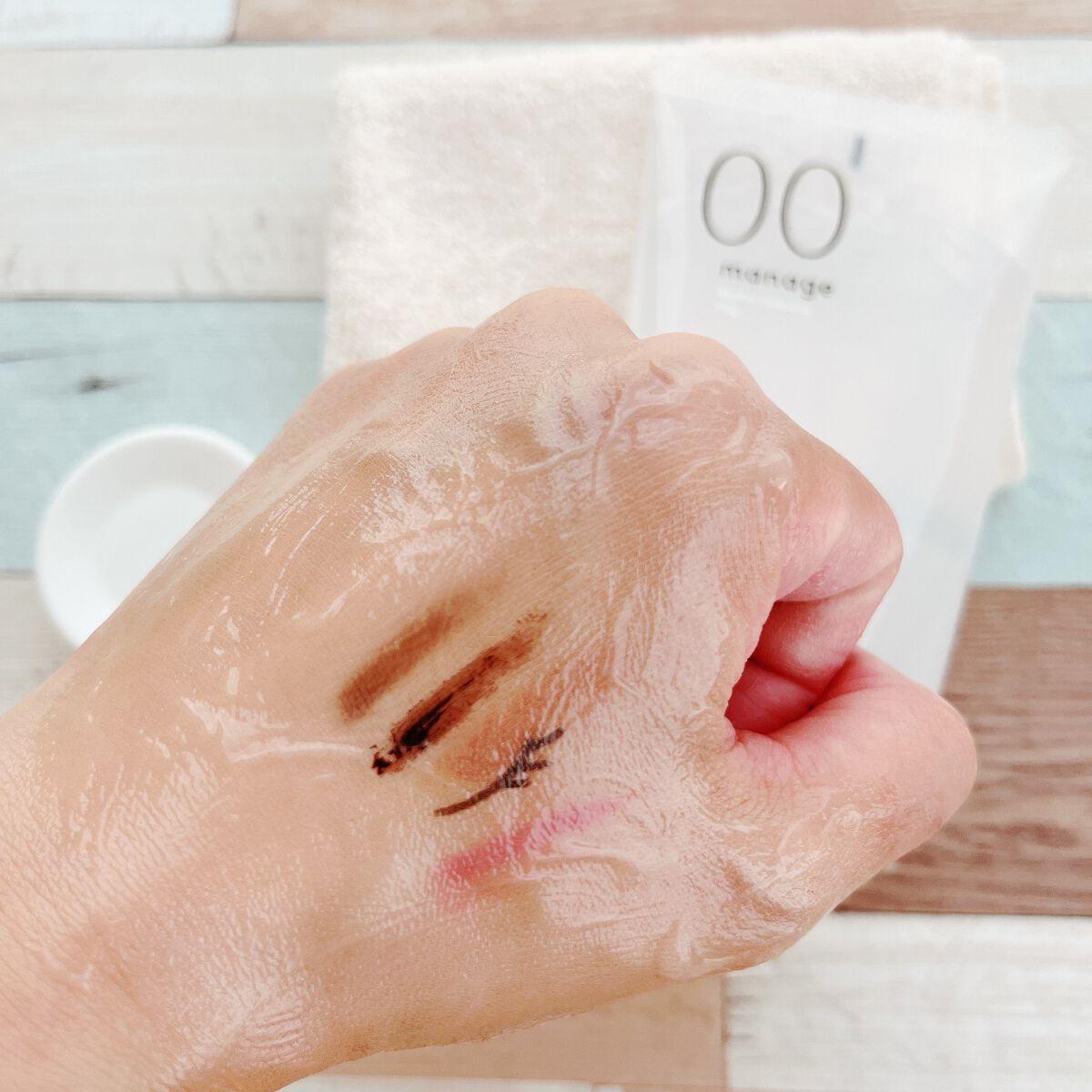 🌟manage00ブースタークレンジングぷるんとしたゼリーのような固めのジェル。食べたくなるような!?不思議な質感。クレンジング用に開発された成分「ナノキューブ※」を99.8%使用しているんだそう。なじませるとメイクや汚れが吸い付いてくる感じ...
