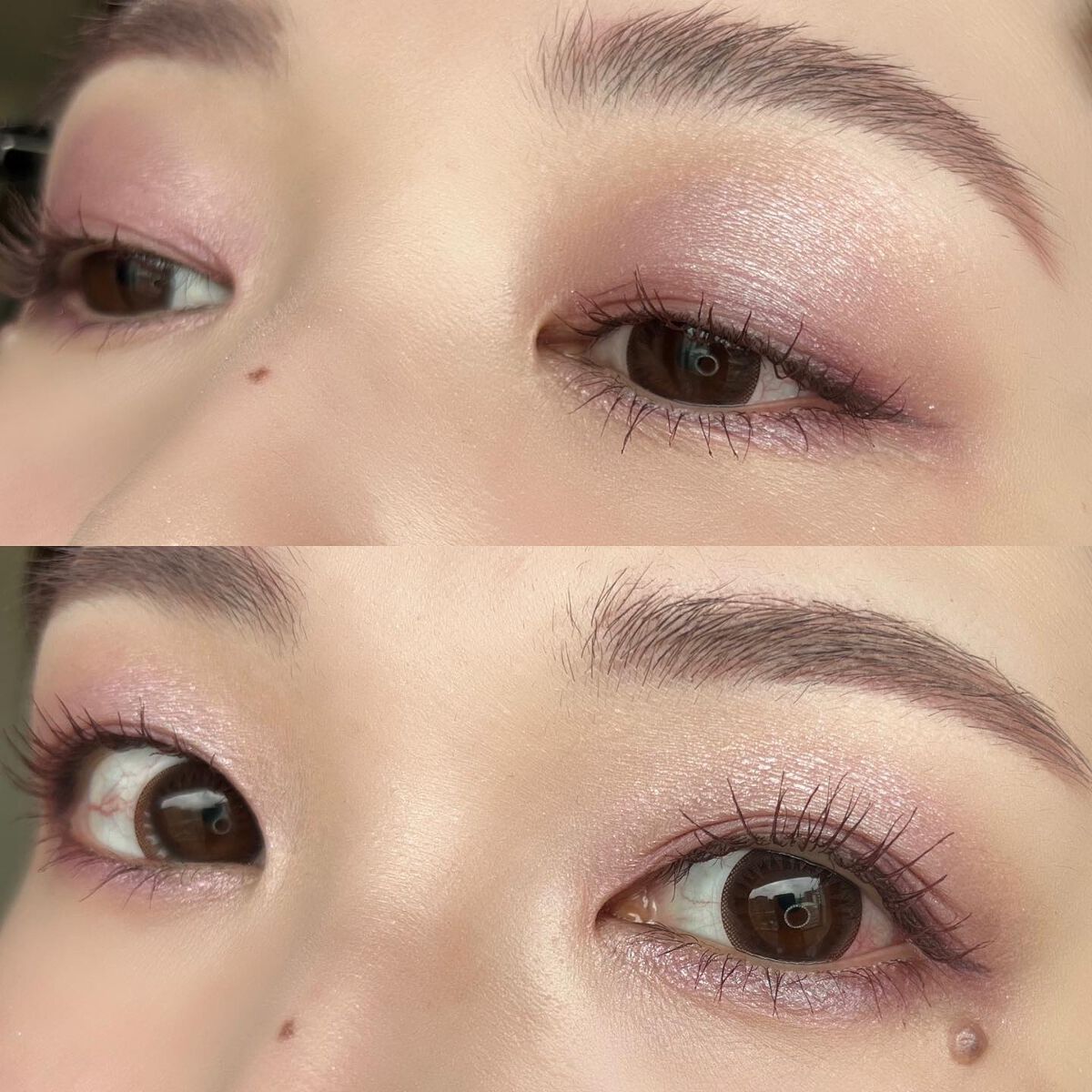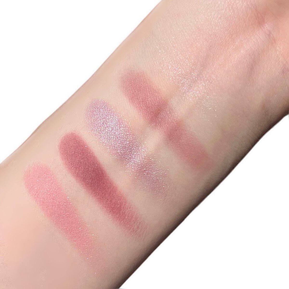 手に試した感じではベースのブルーは弱く、ラメ自体がブルーで可愛すぎる…! BAさんはパウダーアイシャドウのベースにもおすすめと教えてくれたので、 今日はこちらをベースにピンクブラウン系の アイシャドウを使ってメイクしてみたよ🫶🏻 肌に伸ばすとすぐにサラサラになるから ベタベタが残ったりしないし、 パウダーアイシャドウの上に重ねてもヨレない◎