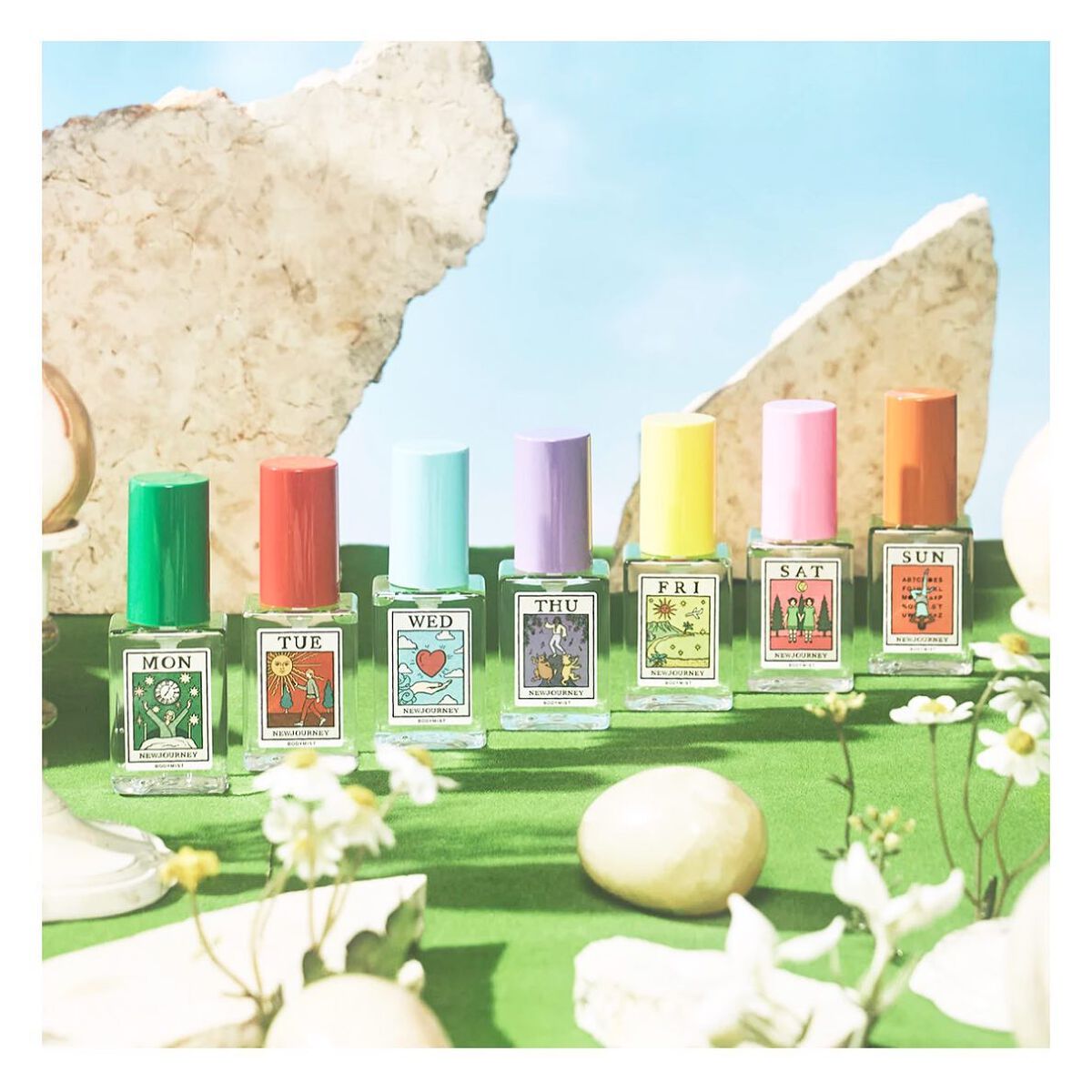 アクセサリー感覚で気分によって選べるフレグランスボディミストなんです✨ ふわっと香る爽やかさが絶妙ないい香りです!香水も強い香りが苦手なのでこのくらいの軽い香りが普段使いにちょうど良く使えています♡ 手のひらサイズのプラスチック素材の入れ物なので、おでかけにも持っていきやすいのがありがたい! 保湿成分であるヒアルロン酸やコラーゲン・ビタミンCも配合しているから、ふんわり香りながら美肌作りも助けてくれるのだそう! もうこれは、全種類揃えて曜日別に使いたくなる楽しさ!
