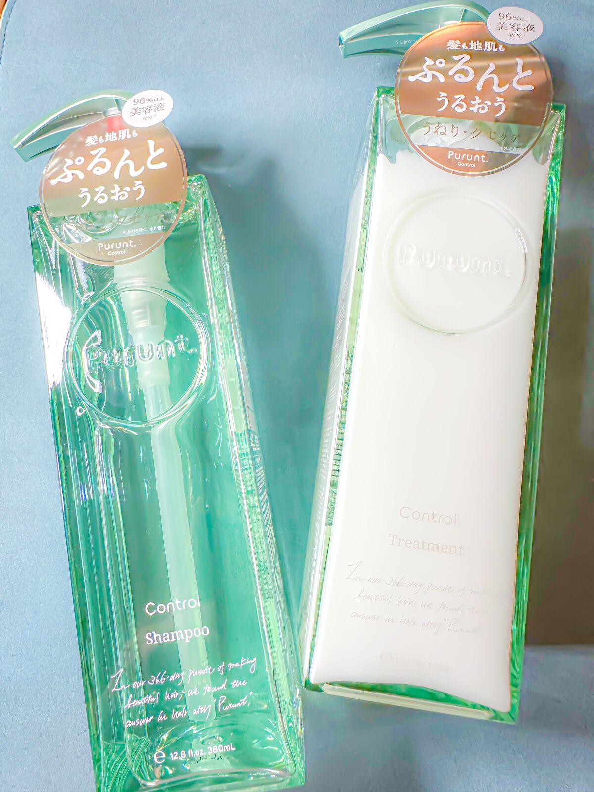 Purunt.コントロール美容液シャンプー/トリートメントスキンケア発想のヘアケアでコントロールはうねり、クセに特化したシリーズ💚シャンプーは泡立ち良く頭皮の汚れを吸着除去🙆♀️トリートメントはなめらかでなじませやすく手触りがつるん😍まとま...