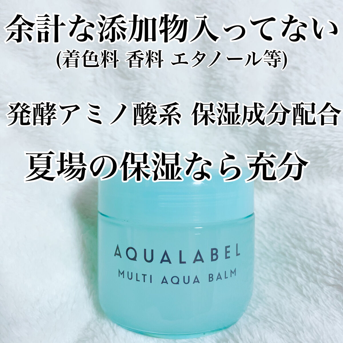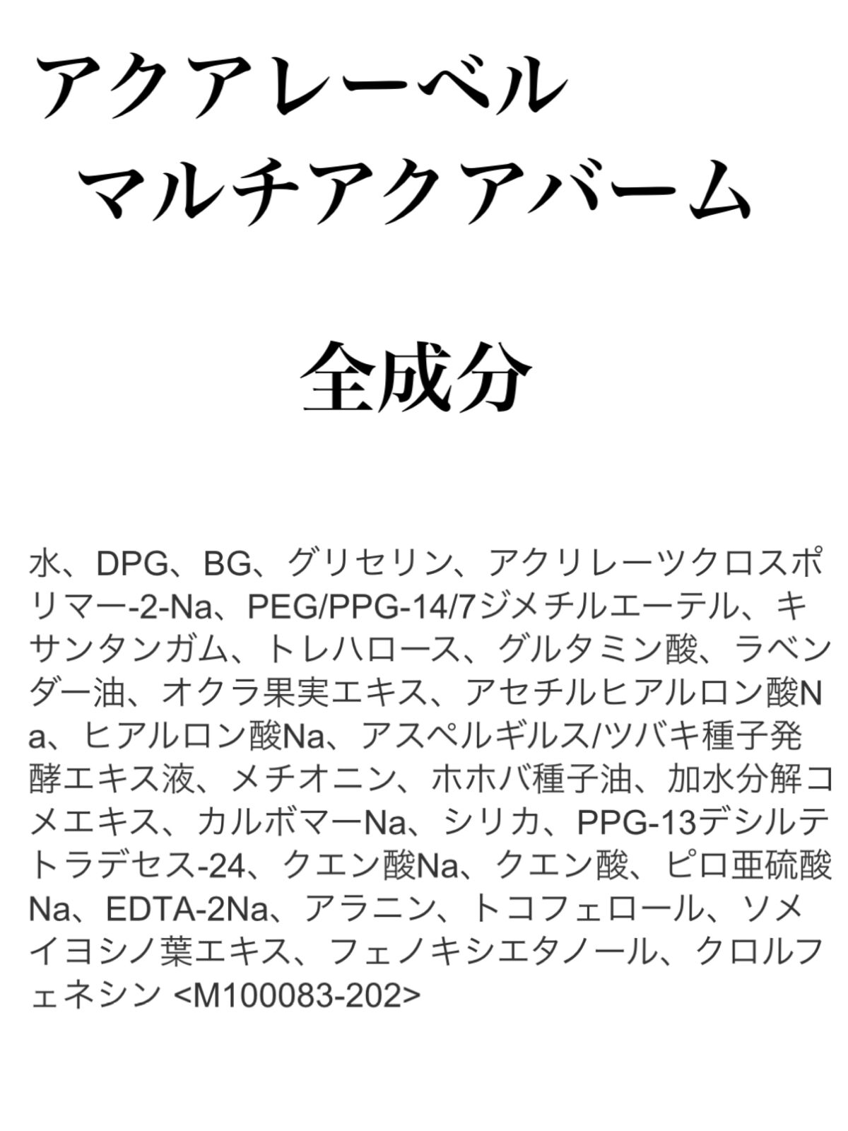 ほとんど変わらず油分なしの保湿系 ニキビや肌荒れといった炎症系の鎮静 着色料、香料、エタノールが不使用 発酵アミノ酸系の保湿成分がたっぷり配合 成分自体はシンプル みずクリームより保湿力あり マルチアクアバームは圧勝です 惜しみなく全身の保湿ができます