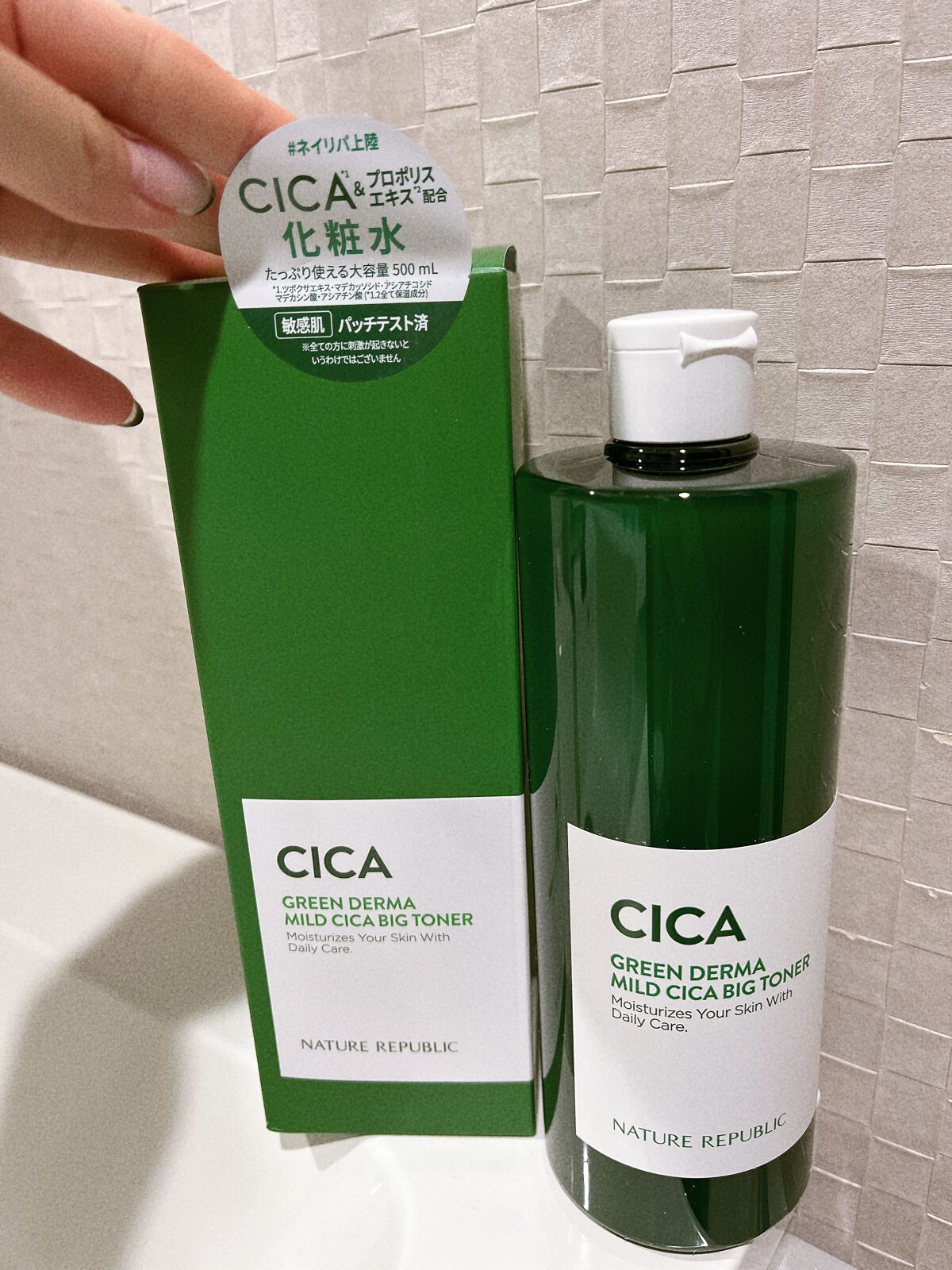 #スキンケアの衣替えネイチャーリパブリック🍃グリーンダーマCICAビックトナー大容量500mlの化粧水でたっぷり使えちゃう!保湿されるけどベタつかないのでこれからの季節にぴったりです!🍃グリーンダーマCICAセラムとろみのあるテクスチャーベタ...