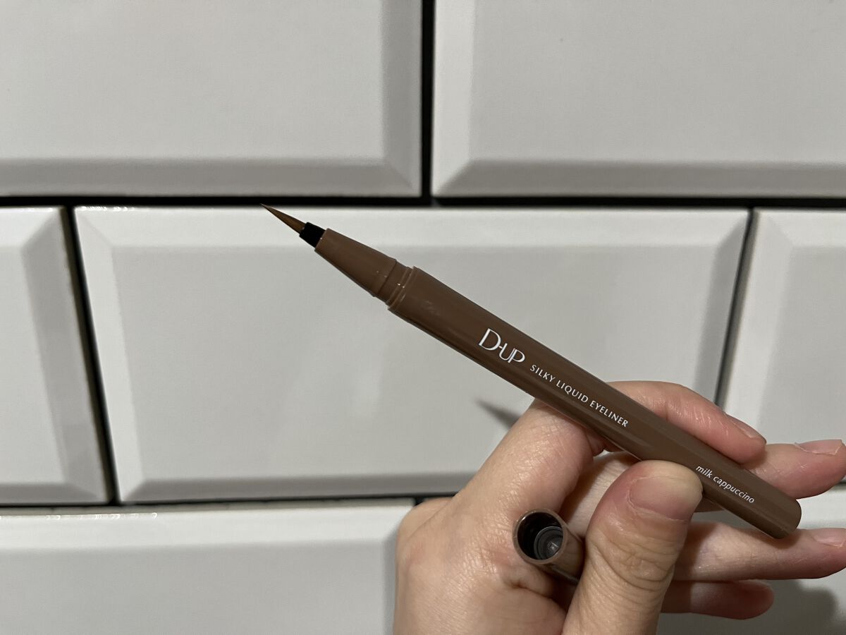 新色!そしてディーアップ初のラメライナー! シルキーリキッドアイライナー スターダストブラウン 筆にコシがあり、リキッドアイライナーの中ではアイラインが描きやすいです 速乾性に優れた、こすれに強くにじみにくい特殊ポリマー配合