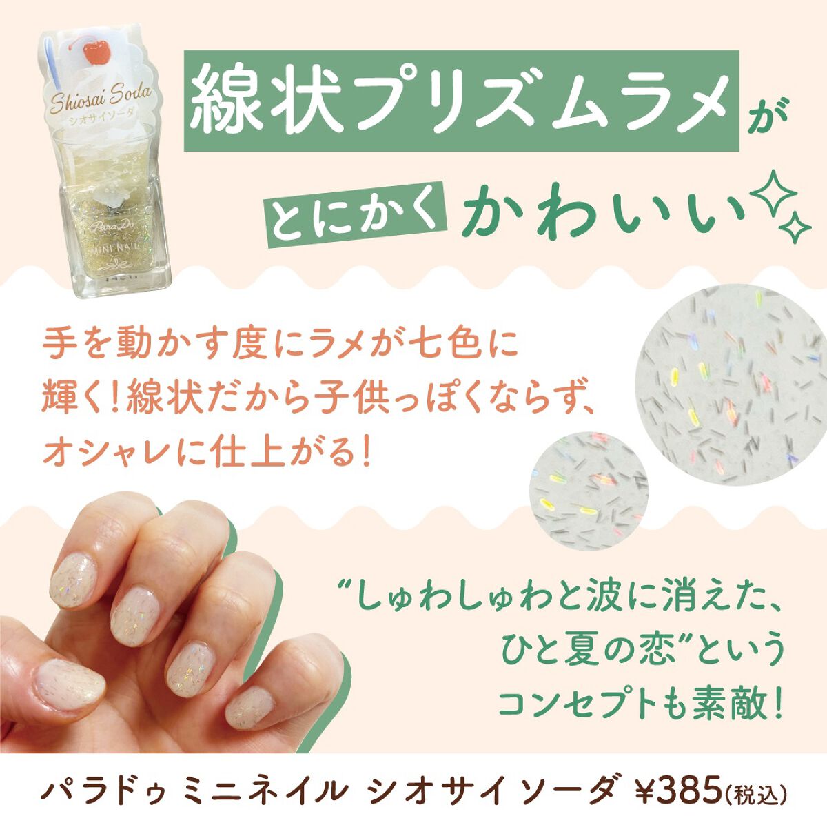線状プリズムラメが可愛すぎる🧡#一目惚れコスメ#パラドゥ #ミニネイル GD04 #シオサイソーダ ¥385(税込)#セルフネイル...