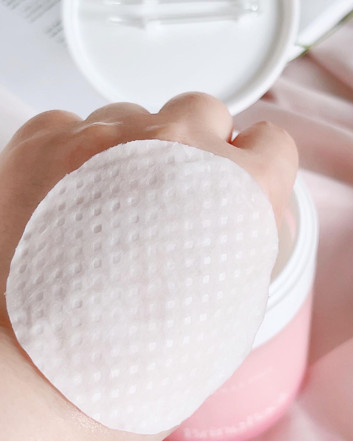 美容液をしっかり含んだ厚みのある柔らかいパッド。 肌に優しく密着🥰 使った後の肌はひんやりもっちりしてる💓 グアバ葉エキスなど複数の植物エキスが肌を落ち着かせてくれる✨
