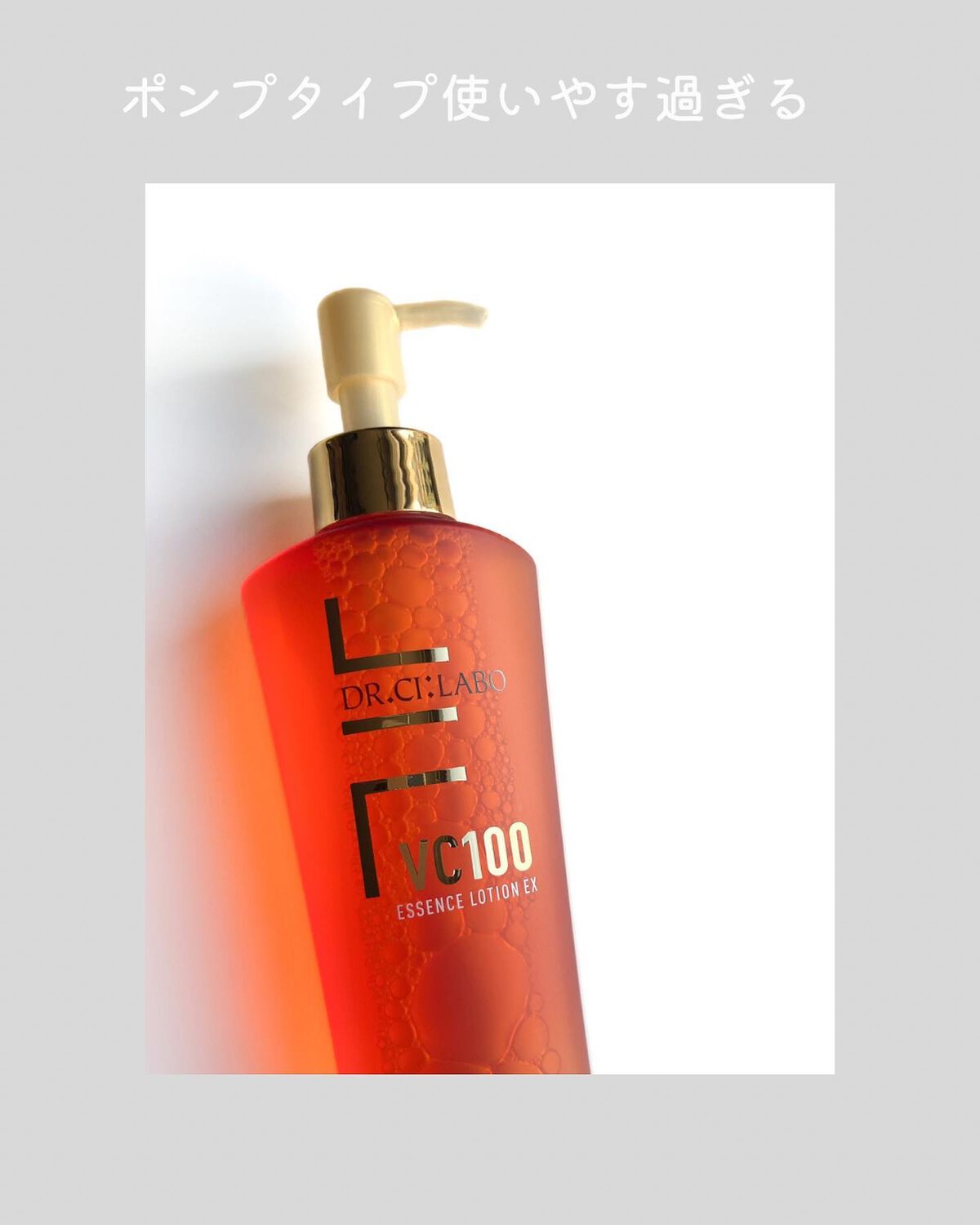 大好きなドクターシーラボの VC100エッセンスローションのポンプタイプは、ローションパックするのにめちゃくちゃいい! お風呂出て直ぐにコットンにバシバシ出して、コットンパック出来ちゃう♡ 入浴後すぐにお肌に水分補給したいからポンプタイプ好き過ぎる〜🥺
