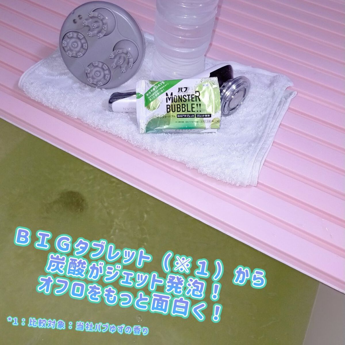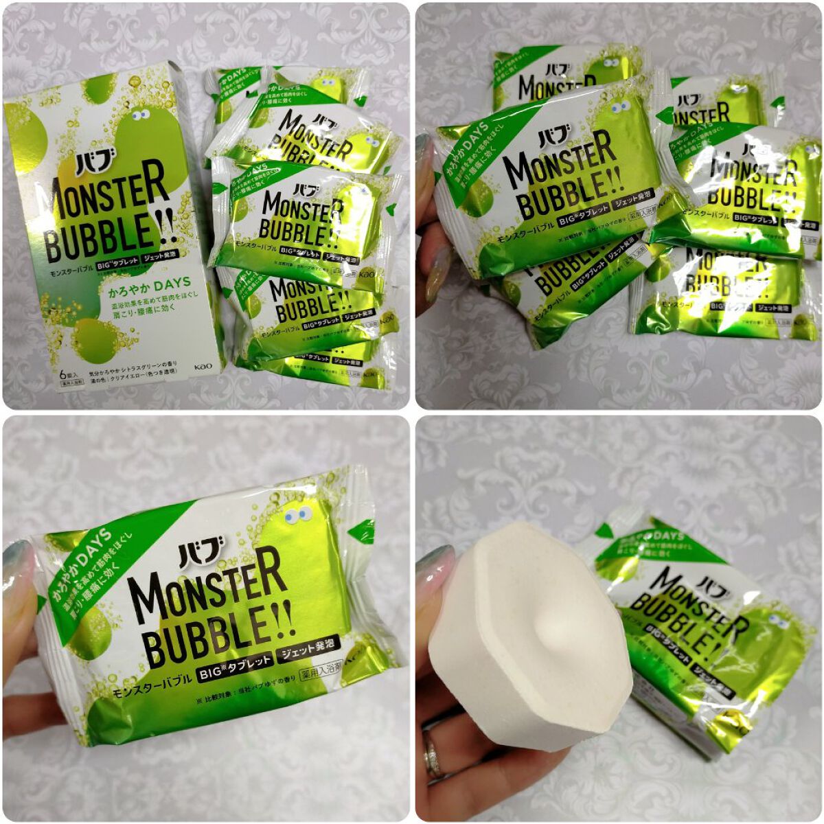 温浴効果を高めて筋肉をほぐし 肩こり・腰痛に効く かろやかDAYS 気分かろやかシトラスグリーンの香り。 シトラスグリーンの爽やかな香りもとても良かったです。全体的な使用感から、「かろやかDAYS」というネーミングは本当にこの商品にピッタリだなと思いました💗 990円で6錠入りなので、同じ値段で4個入りのモンスターバブルMEGA級と比較すると少しお安め。