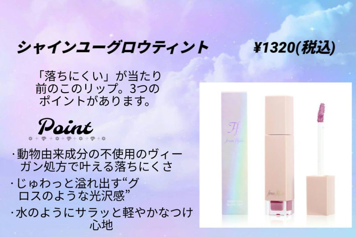 このパウダーは結構使ってる人が多いんじゃないかなと思います。 このアイシャドウは5色も入っているため、グラデーションをつくったりして目を強調させたりできます。 このコンシーラーは3種類あるため、自分の肌にあうものを見つけることができます。 昨年、03アイシーピンクが発売されたことにより人気が高まりました。 私がこのマスカラをオススメしたい理由はコームタイプだからです。 このチークはデザインも可愛いし、5色の色もあるためいろんな組み合わせで塗ることができます。 リップバームの保湿力、口紅の発色、グロスのツヤ、UVカットなどこれ1本で叶えることができます。