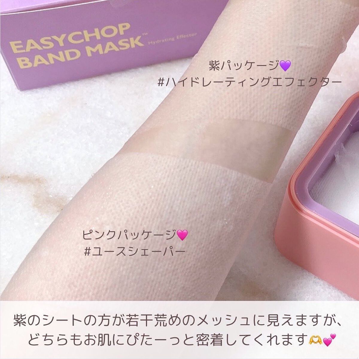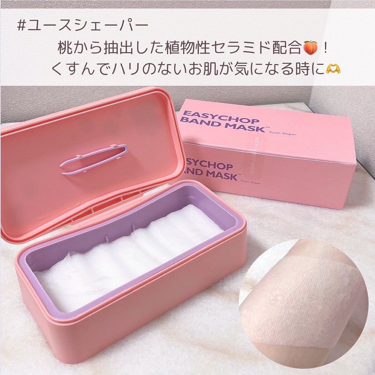 - 気になる部分にぴったりツヤハリケアバンドマスク。 脚・腕・頬・フェイスライン・首etc... 伸びるマジックバンドシートだから、どんな場所でもピタッと密着&無駄なく集中ケア。 肌本来の澄んだツヤとハリを与えます。桃由来のセラミド成分*配合。 *フィトステリルグルコシド/グルコシルセラミド(整肌成分)