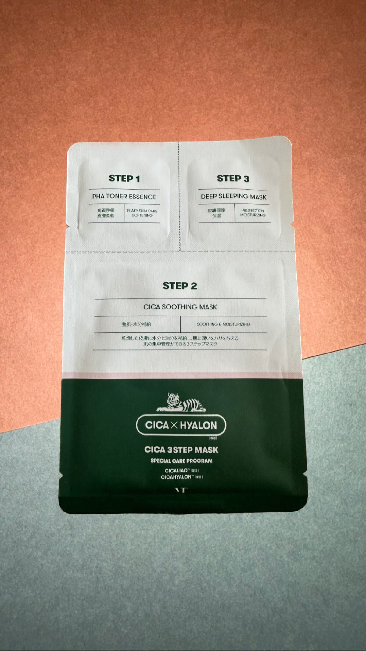 ...♡.VTCICA3ステップマスク#肌荒れ予防計画#コスメ購入品 大好きなVTのCICA3ステップマスク!これ1枚あればスキンケアが完結するので、おうちケアとしてはもちろん、旅行にも大活躍^^長時間メイクした時や紫外線をたくさん浴びてしま...