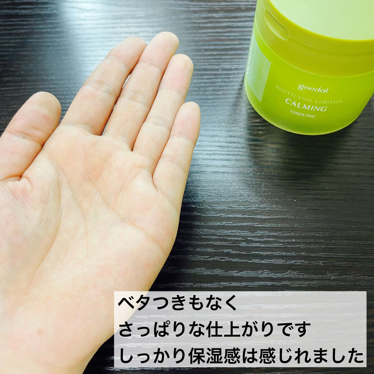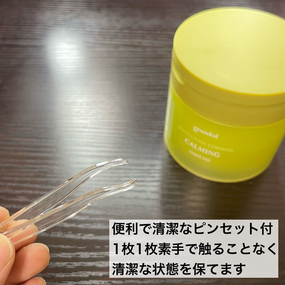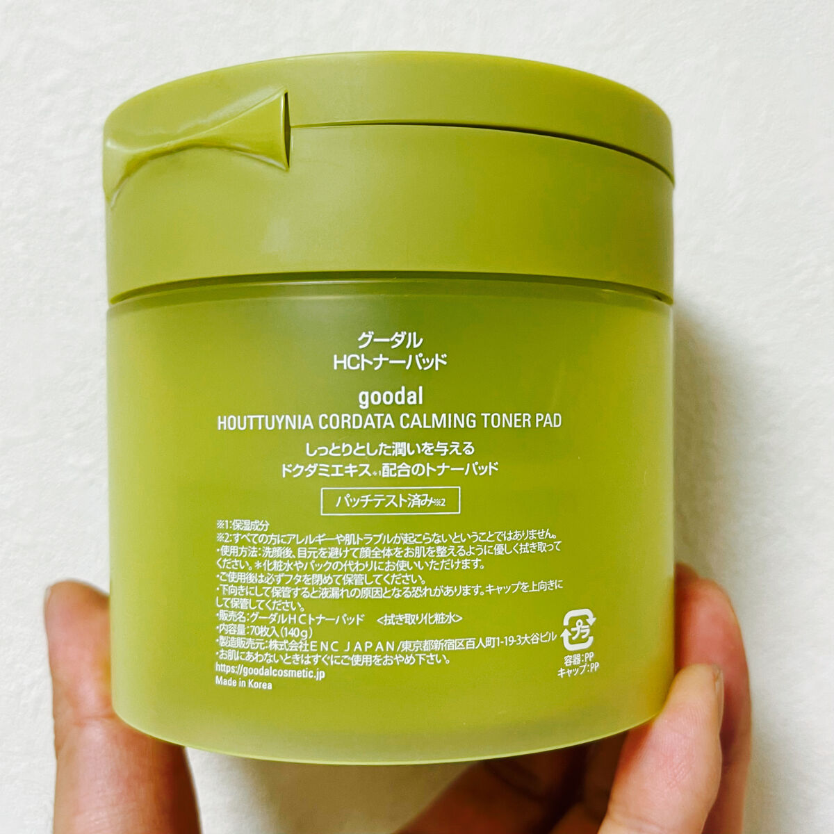 - 10秒で完了!肌鎮静ドクダミエキストナーパッド ガーゼ素材のパッドにドクダミエキスをたっぷり染み込んだ「グーダルHCトナーパッド」は、刺激を受けて敏感になった部分に乗せて集中水分補給+クーリングでき るほか、拭き取りパッドとして角質や毛穴ケアにもお使いいただけます。 パッドの両面で目の粗さが異なるので、部位やお悩みに応じて使い分けられるのも好評。また、肌pH指数に近い弱酸性パッドで肌の油水分バランスを整え、疲れた肌を内側から癒します。