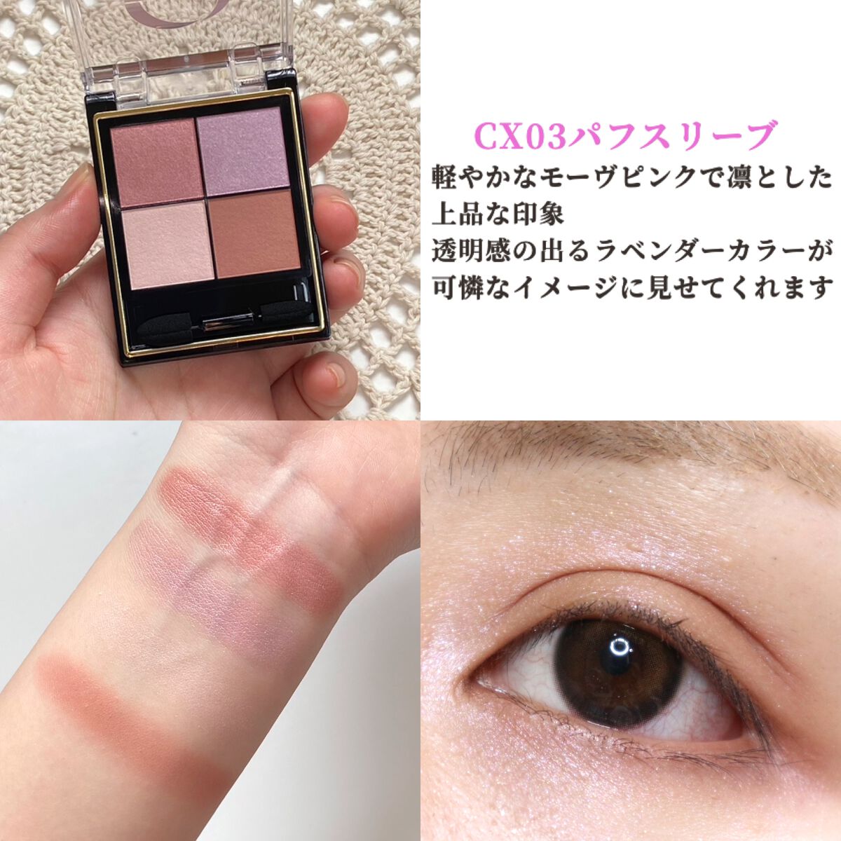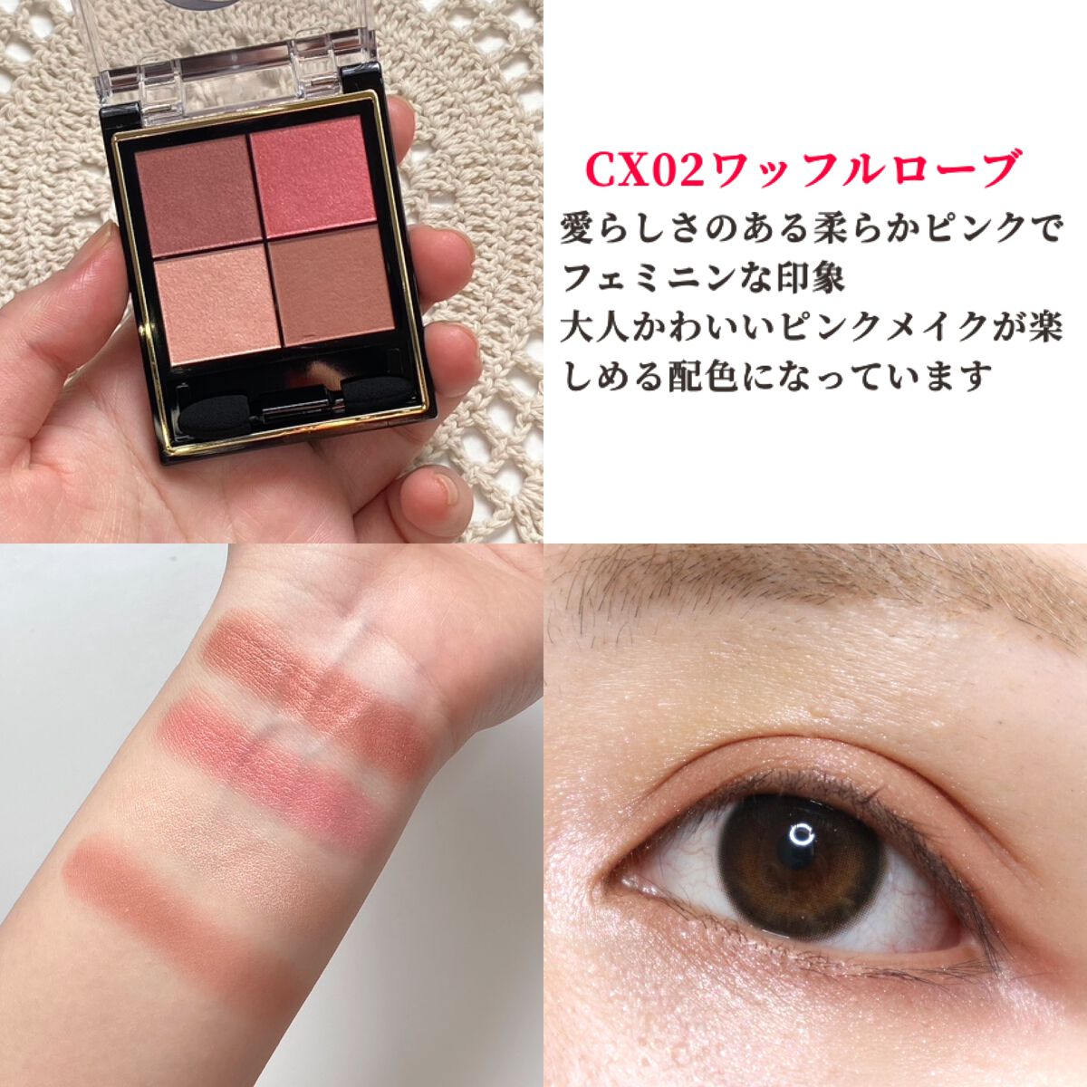 | 3つの異なる質感からなる4色パレットで、使い方によって雰囲気も質感も変わっていきます✨ | 詳細を見る |