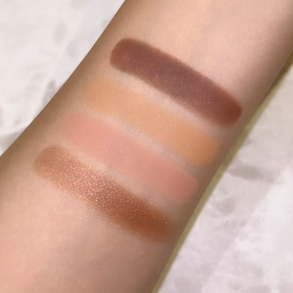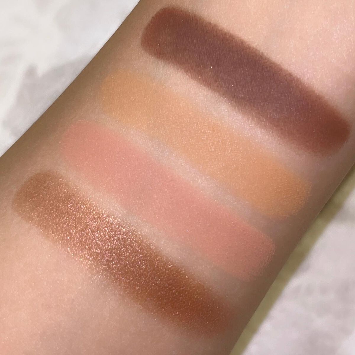 レベージュはどれも使いやすくて 華やかにもベーシックにも使えるパレット✨ ディープだけ日本では定番じゃないのが残念🥲 ウォームはスウォッチ撮って可愛いってときめいたし、 テンダーは写真整理しててこの可愛い アイシャドウなんだ?ってなったし、 インテンスはベスコスに選んだぐらいお気に入りやし、 ディープは強めメイク最高って思うから全部好き!!