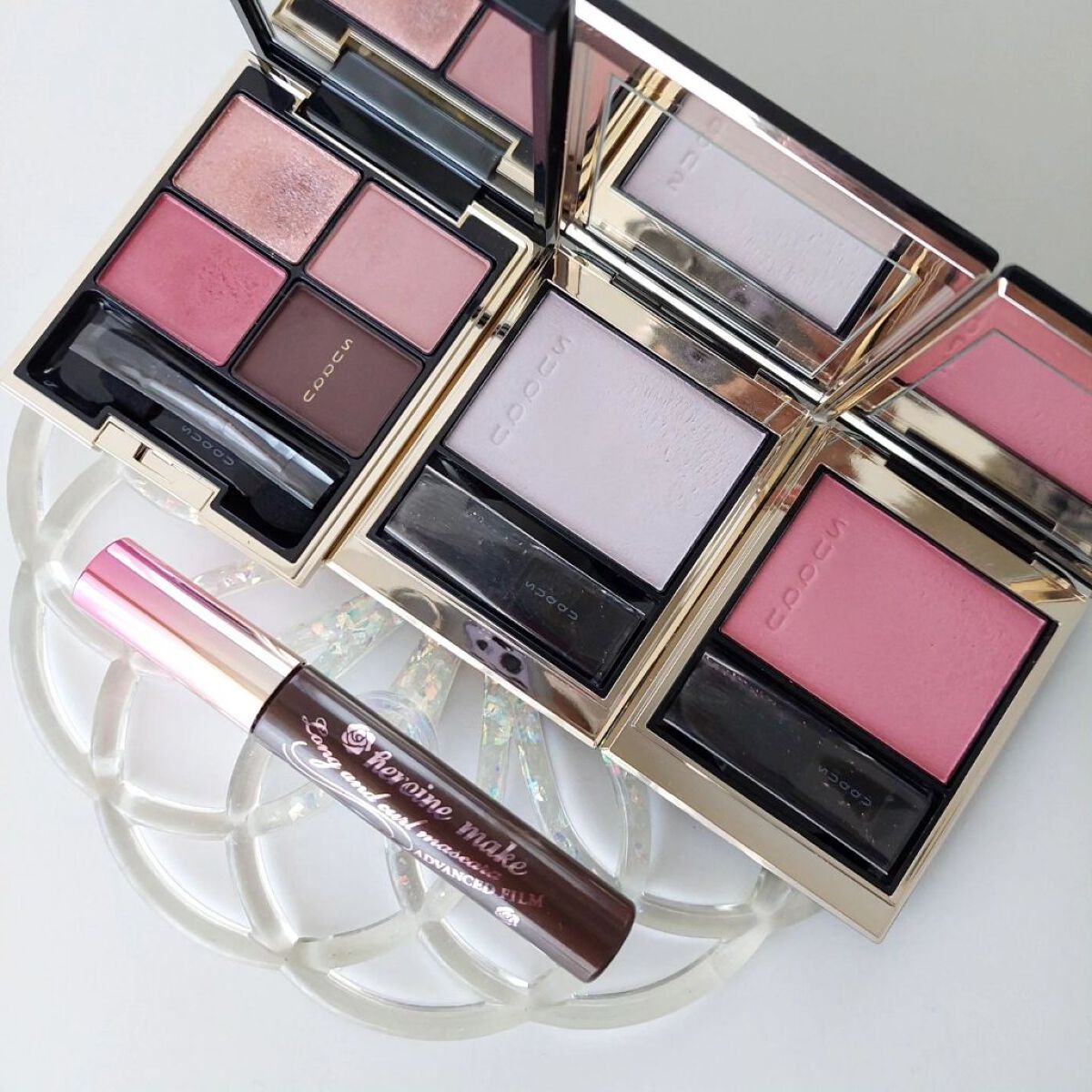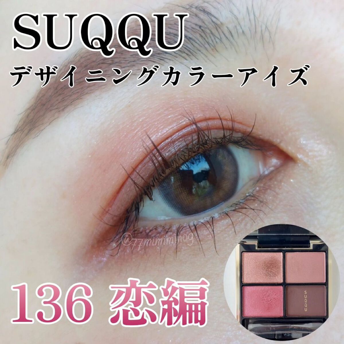 ベースに仕込むことで、パレットのカラーたちを引き立ててくれて発色がきれいに出る…!感動♡ 私の瞼ではピンクみが強めに出るんだけど、そのおかげでコートカラーのラメと締め色が映えて美しい🥹🩷 これ、136のパレットにも仕込んでみたい!!