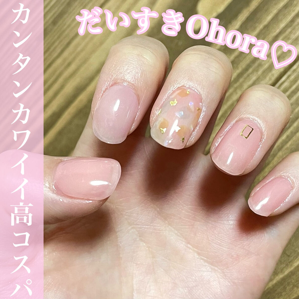 ohora昔、セルフでジェルネイルしてたけど簡単なデザインしか出来ないし、道具をたくさん揃えたりが大変で💦ohoraのネイルシールだと、貼った後にはみ出た部分をカットしてジェルランプで硬化するだけ!貼って固めるだけで凝ったデザインが簡単に完成...