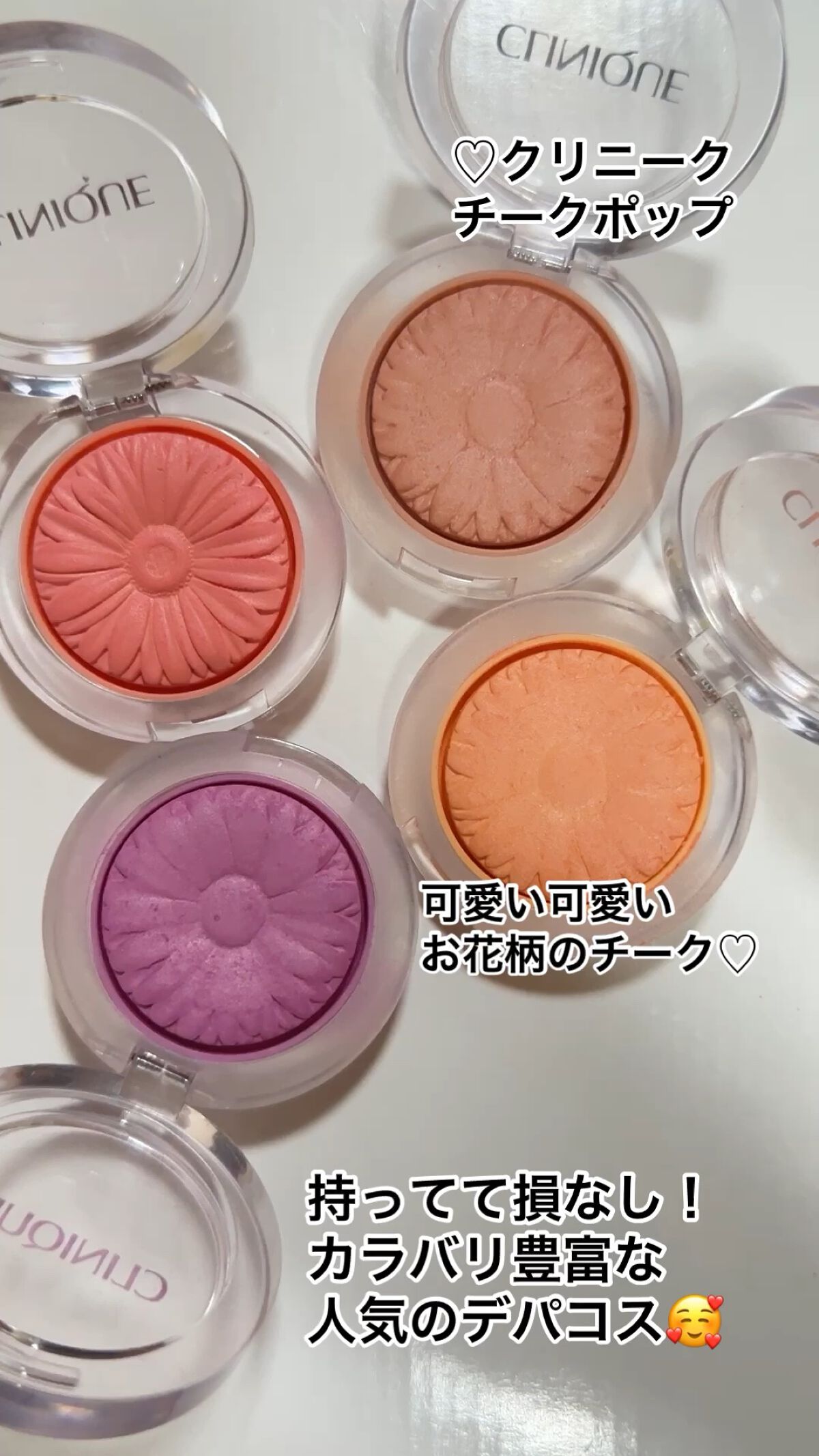 絶対いつか買う!!と決めていたCLINIQUEのバレリーナ ポップのチーク😍 ガーベラの型押しになっていて使うたびに可愛くてテンション上がります〜😆 21バレリーナ ポップのカラーは淡い透明感の出るベビーピンク色です!!もうめちゃくちゃドストライクに大好きな色!!!