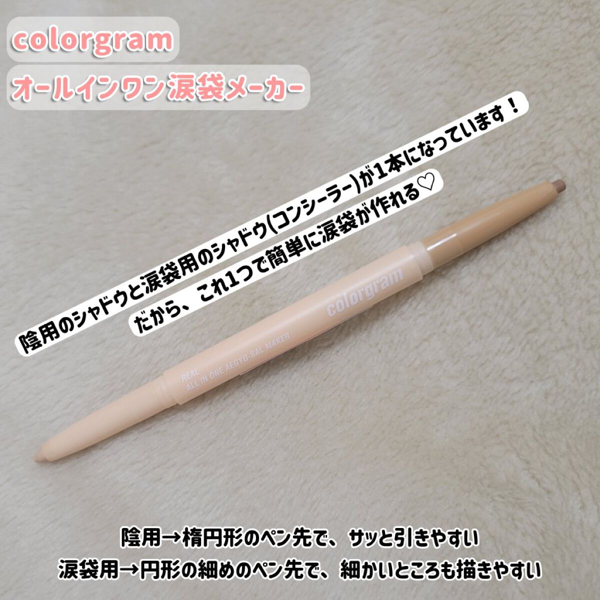 今年もよろしくお願いします🙇♀️Colorgramオールインワン涙袋メーカー07WARMPEACHQoo10メガ割の購入品✨涙袋の影も良い感じでナチュラルに引けるし、涙袋に明るさがでて、欠かせないメイクアイテムです!とってもお気に入り😚#韓...