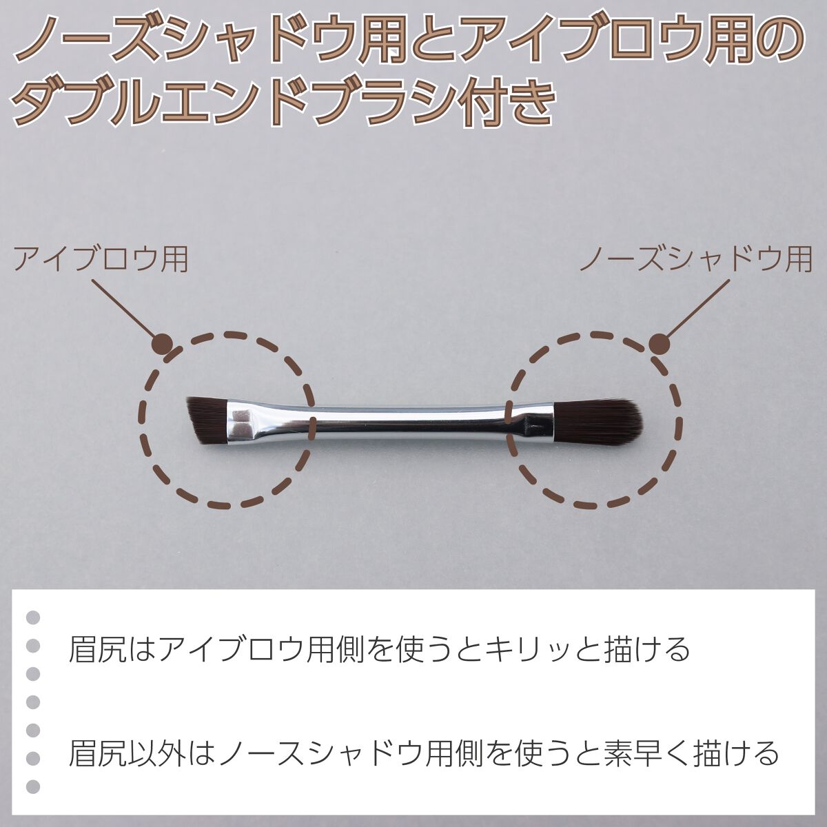 - ノーズシャドウ入り眉パウダー。 彫り深&ふんわり立体眉で目元の印象アップ。 ノーズシャドウにも使える、3色グラデーションのパウダータイプ。 皮脂吸着パウダー配合で、パウダーなのに落ちにくく、ふんわり美眉が長持ち。