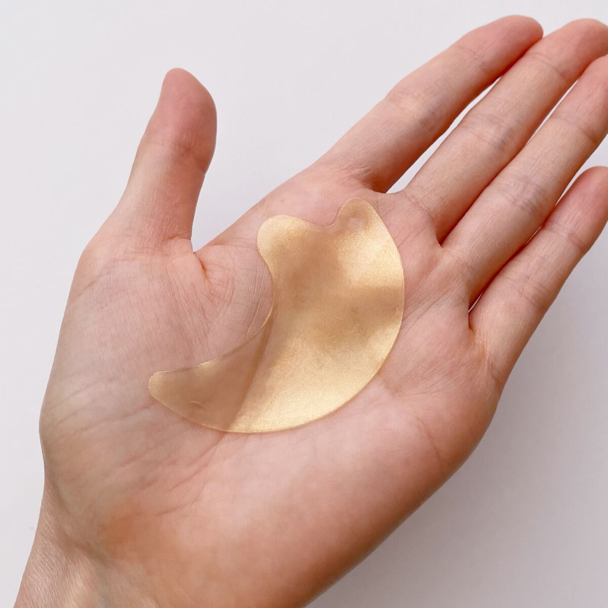 プレミアムスキンケアブランド「Snp」のゴールドコラーゲンパーフェクションアイパッチはなんと24Kのゴールド配合で、超贅沢な目元ケアができちゃう! ぷるぷるのゼリー状のハイドロゲルパッチで、目元やほうれい線のケアにぴったりなサイズ。お肌にのせるとぷるんぷるんで、少しひんやりクーリング感があって気持ちいい🧊 このパッチ、ラメ感があってすごくキラキラ〜✨ 贅沢な目元ケアにぴったり!