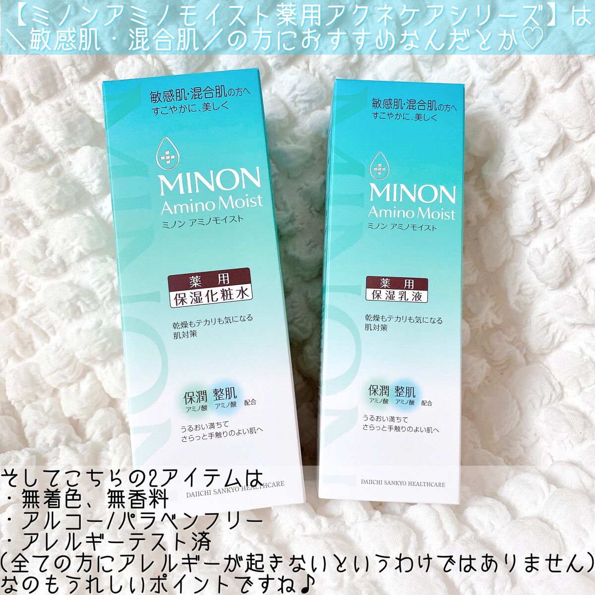 「ミノン」さまから商品提供をいただきました。\混合肌・敏感肌さんに!!/さっぱりうるおいに満たされる✨️MINONミノンアミノモイスト薬用アクネケアローション150ml¥2090ミノンアミノモイスト薬用アクネケアミルク100g¥2200...