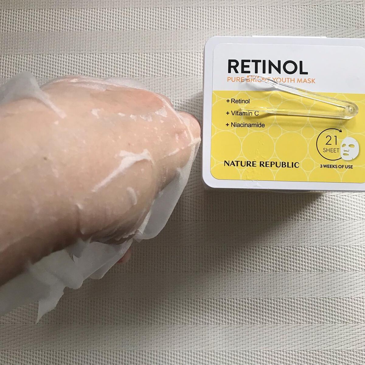 ⌇NATUREREPUBLIC提供元:MOREME〖レチノールピュアブライトユースマスク〗レチノールとビタミンが配合されたキューブレチノールマスクがリニューアル🔮⟡.·21枚⇒30枚入りの大容量になりデイリー用として使える🤲🏻シートは柔らかく...