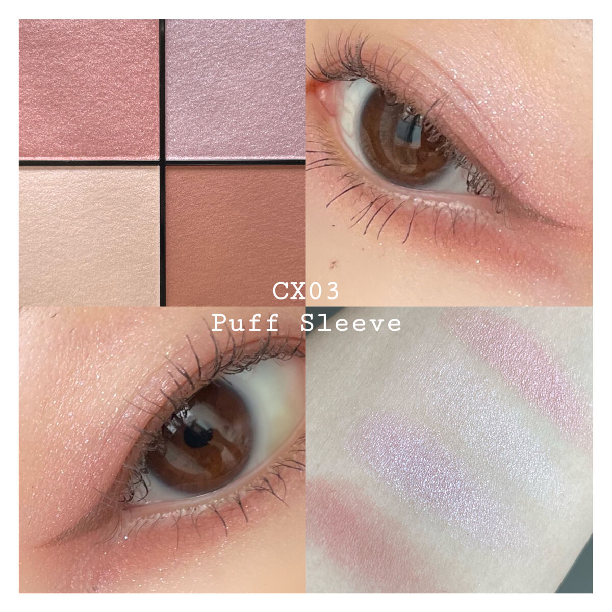 【可憐さを纏う】excelリアルクローズシャドウCX03 パフスリーブこれはブルベさん優勝✨🌱品のあるモーヴピンクパッと見ただけでは分からないツヤとラメの綺麗さ。ピンク色の可愛さ♡右下のブラウンも柔らかな青みブラウンで透明感たっぷりの配色。🌱...