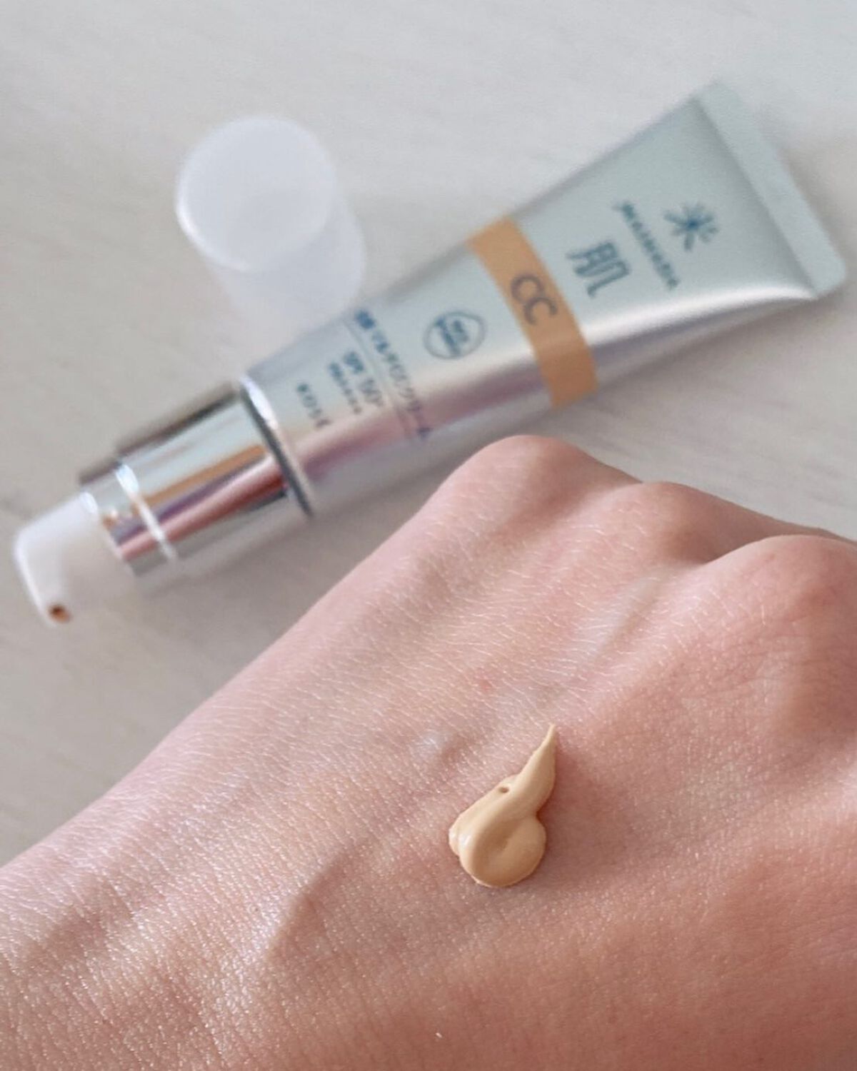 紫外線や乾燥のダメージはもちろん、長時間のPCやスマホ習慣、日々のマスクによる刺激や大気汚染。 肌をしっかり守りながら、つけ心地なめらかで素肌のような美しいツヤと仕上がりがずっと続くCCクリーム✨ イエローベースの私にピッタリの黄色味が強めなカラーかな?と思います❣️ マスクプルーフ・大気汚染物(花粉・ちり・ほこりなど)カット・ブルーライトカット・ライスパワーNo.7配合の美容液機能を新たに加えた1品10役ととってもハイスペックなのが魅力的♡ お肌にスーッと伸びる使い心地なので1プッシュ程度で全顔に均一にメイクできちゃいます❤️ 容器にはキャップが付いているので持ち運びにも便利です❣️ コンパクトなサイズ感なのでバッグのポケットやポーチに入れて持ち運んでいます✨