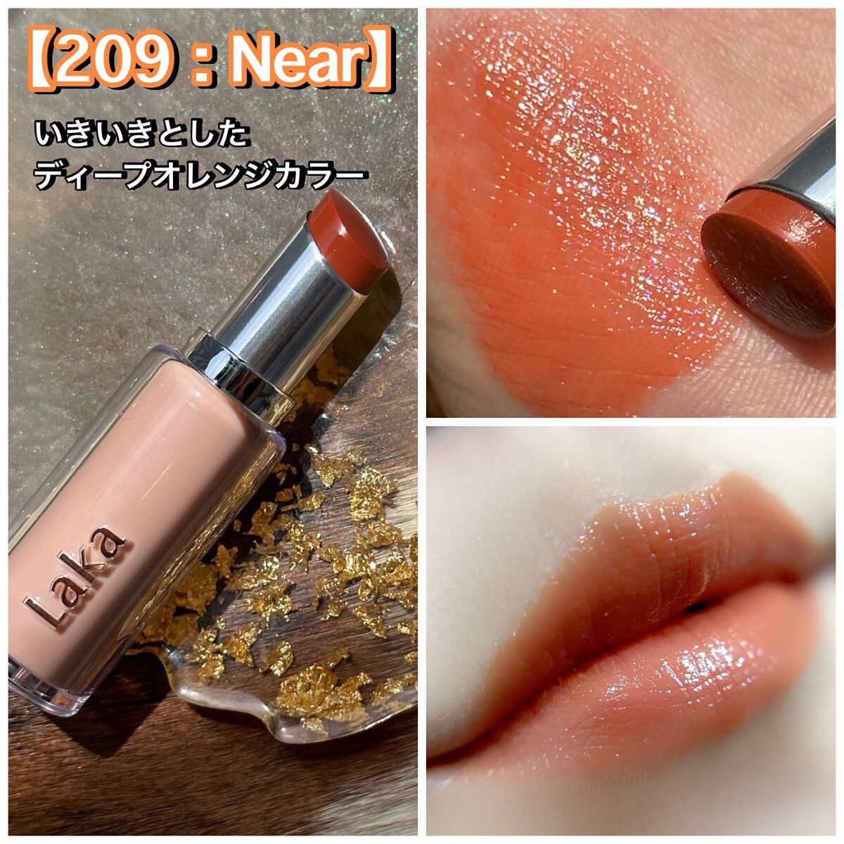 - Point1 透き通った気品が感じられるカラー ユニークなヌードカラーから自然なニュートラルカラー、深くて密度のあるポイントカラーまで、さまざまな好みに合わせた幅広いカラーバリエーション。それぞれのカラーが持つ明度や彩度に合わせて透明感を細かく調整しているため、グラデーションリップやオーバリップなど、プロが施したようなさまざまなリップメイクが楽しめます。また、夕方の暗い空間や、室内の光の下でも、唇本来の色にリップスティックのカラーが馴染み、水彩画のようなナチュラルな発色で、自然な血色感のある唇に演出します。 Point2 光に包まれたガラス玉のようなきらめき Lakaならではの「ボンディンググロウ」フォーミュラで、唇に触れた瞬間、体温でやさしく溶けていくようなテクスチャー。しっとりと馴染んで密着しながら唇をコーティングしてくれます。高い屈折率で光を強く反射させるハイシャインオイルコンプレックスを配合し、光沢感のある生き生きとしたリップカラーを実現しました。