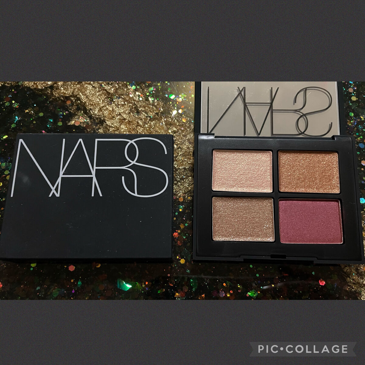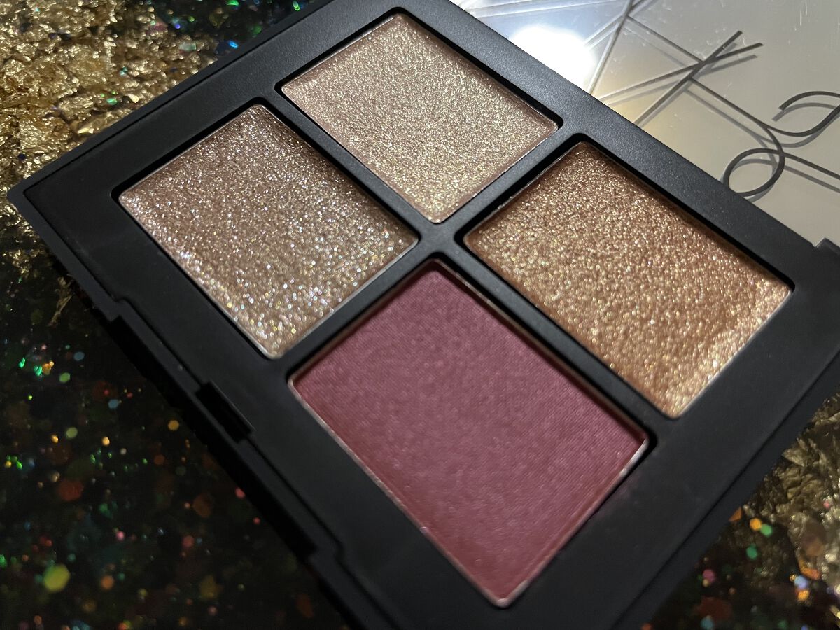 NARSクワッドアイシャドー03140LAGUNASUNSETこちらは2023年発売の商品です。限定品の為、店頭では見られないので備忘録として投稿します🥲左上の色が一番ギラギラ。まぶたにのせるとベージュぽく発色し派手な印象に。他の色も強めの発...