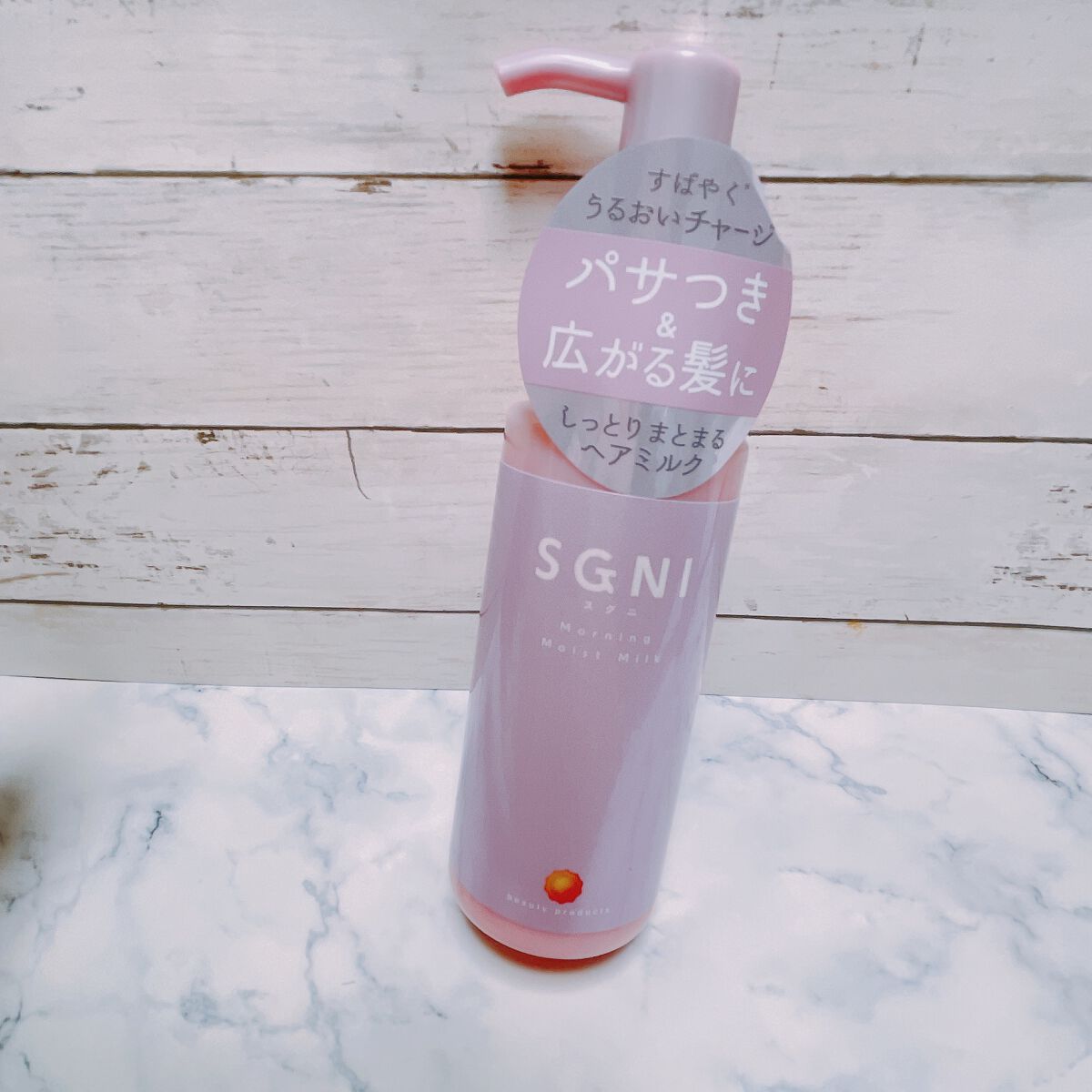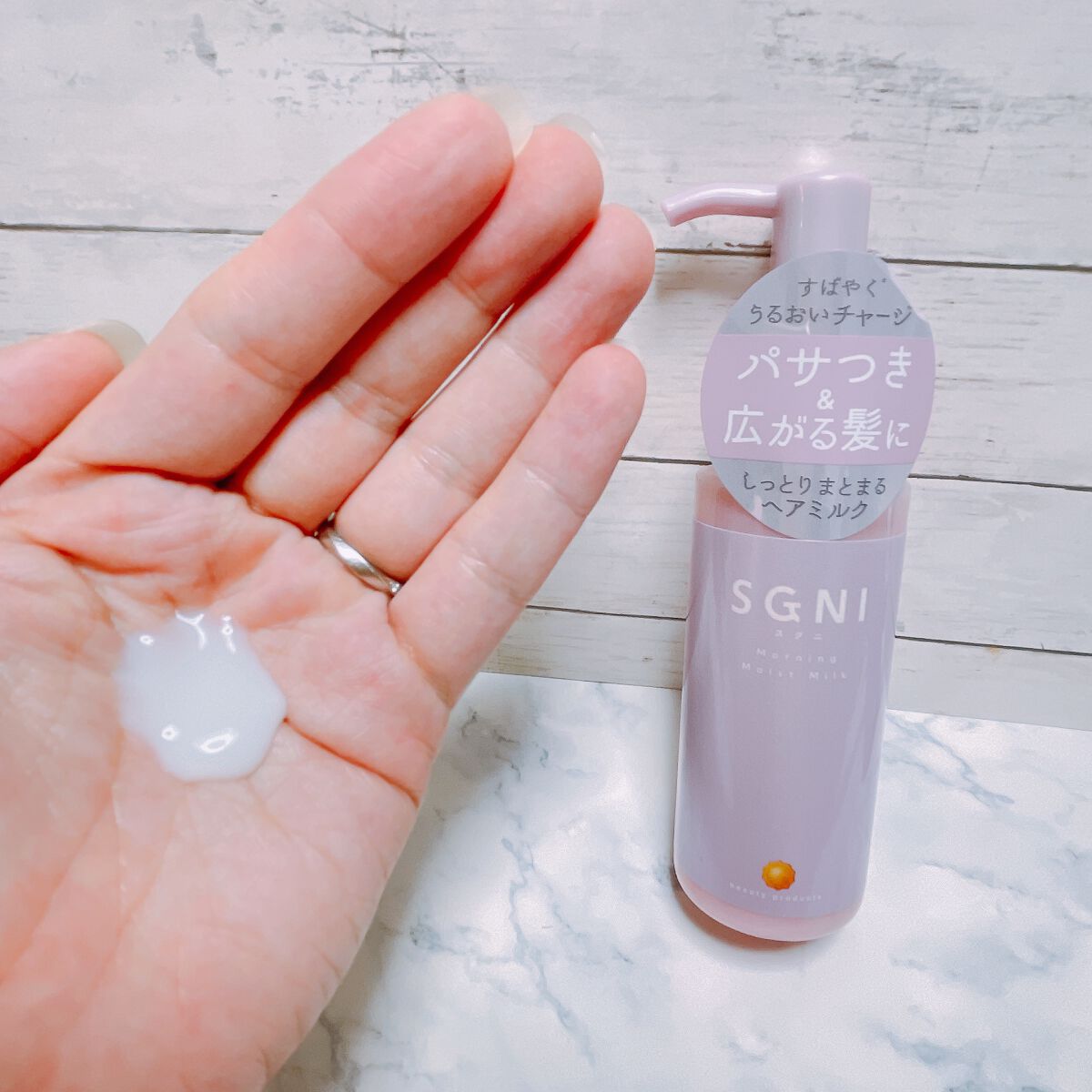 *SGNI モイストミルク (洗い流さないヘアトリートメント・ヘアスタイリング) パサつき&広がる髪がしっとりまとまる! スタイリングもできるファイバー保湿ミルク。 *SGNI グロッシーオイル (洗い流さないヘアトリートメント) サラッとしたオイルでベタつかず、 重くなりすぎずにまとまります。 場所を取らないスリムボトル! 手軽に使えるポンプタイプだから キャップを外す手間がないのも嬉しい🫶 朝用、夜用として、 質感や仕上がりの好みで使い分けても🙆♀️
