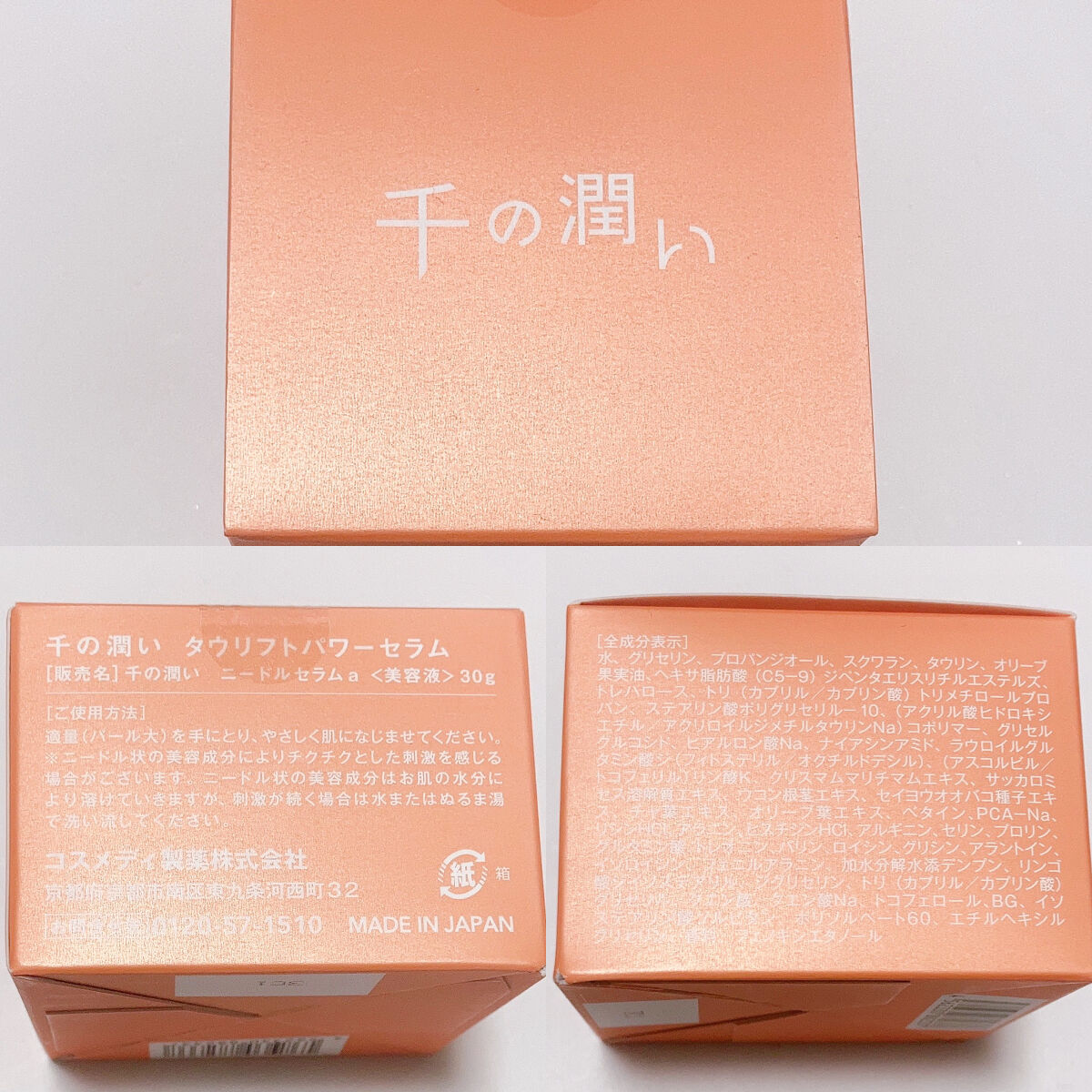 \千の潤いタウリフトパワーセラム/千の潤いタウリフトパワーセラムは、世界初のタウリンニードル化粧品。 タウリンは、肌内部の水分調節やバリア機能に深く関わっているお肌を元気にさせてくれる成分なので、とことんうるおいとハリを与えながら美し...