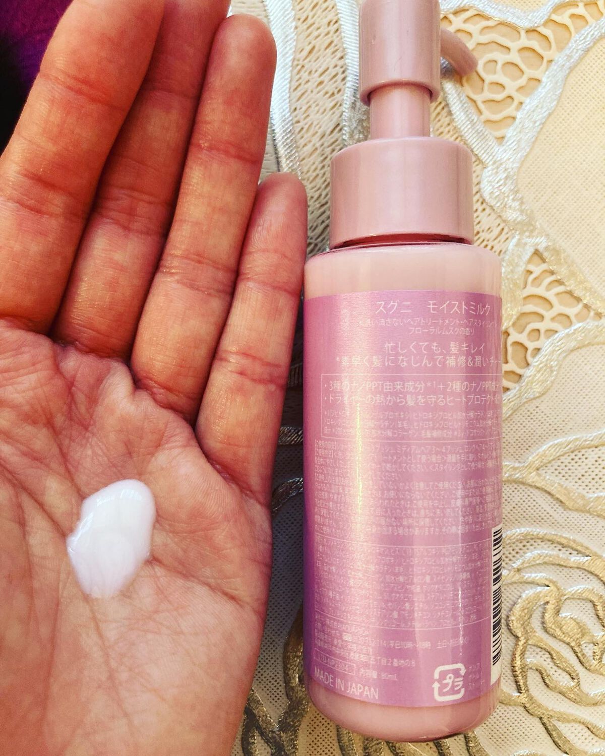 ブリーチ髪×ダメージ×くせっ毛のわたしはスグニのヘアミルク🐮を全力で推します✌️ ダメージ毛〜ヘアミルク難民の人は必見ー! 軽さが売り!ベタつきゼロ!の浸透保水ヘアミルク ヘアオイルと併用◎ 無香料だからシャントリの香りの邪魔しない◎ なんと言っても次の日朝起きたらサラサラ髪×寝癖がない状態だったのがびっくり!