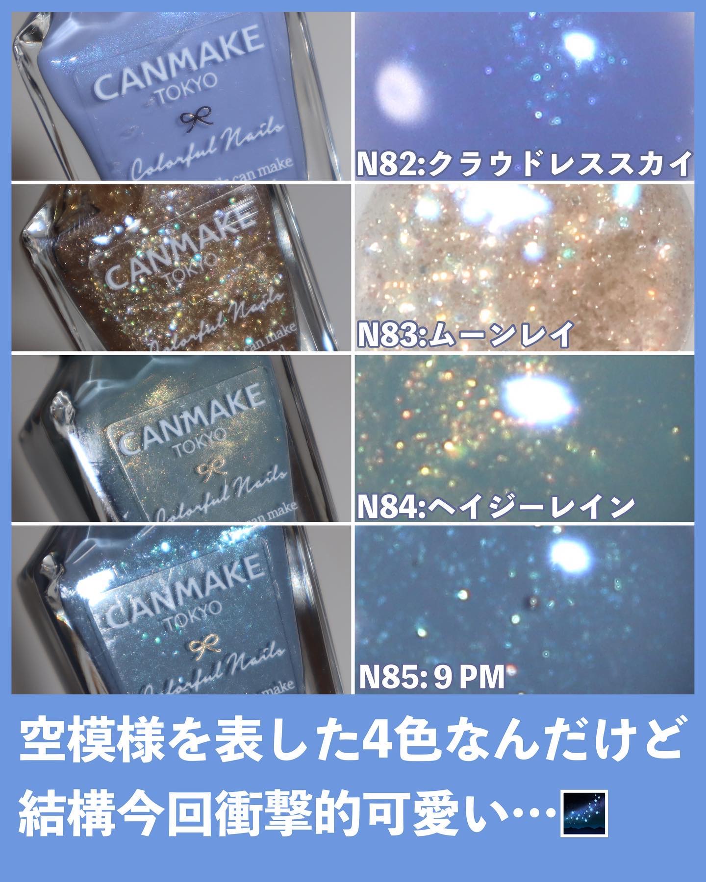 キャンメイクカラフルネイルズN82クラウドレススカイ・N117カクテルブルー¥396(税込み)夏のナイトプールをイメージした限定色が4色登場!そのうち1色と既存色のN82を購入しました!✼••┈┈••✼••┈┈••✼••┈┈••✼••┈┈••...